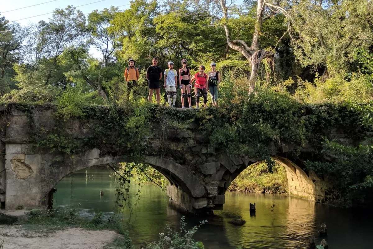 Сегодня участников ждет невероятный и яркий поход по дну Чернореченского каньона Крыма. Он второй по масштабности после Большого каньона, но не по красоте и очарованию. По его дну течет бурный и быстрый поток со многими водопадами, перекатами и порогами, который не пересыхает весь год. Он берет свое начало в Байдарской долине. Вдоль этой реки и будет проходить маршрут — очень яркий и необычный, но не легкий. Порой нужно будет преодолевать громадные валуны, карабкаться по скале и переходить вброд горную реку.