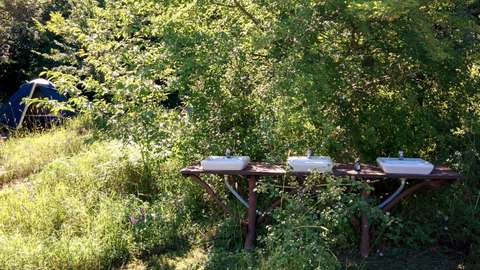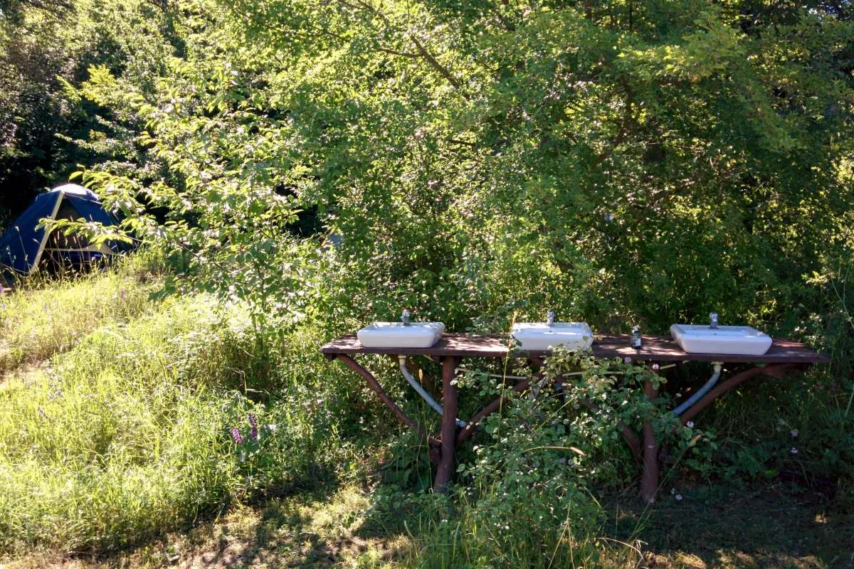 На территории кемпинга имеются летняя кухня для самостоятельного приготовления пищи, беседки для отдыха, беседка-столовая, умывальники, туалет (унитаз), горячий душ (в вечернее время), холодный душ (круглосуточно), колодец с питьевой водой, центральное костровище, а также несколько мангалов и костровищ. Электрификация кемпинга обеспечена солнечными батареями, с преобразователем тока, которые обеспечивают 220 вольт. Этого достаточно для подзарядки мобильных телефонов и прочей техники, а также для ночного освещения. Для вспомогательных целей имеется также бензогенератор. На территории кемпинга работает беспроводной доступ к Интернету. Для сохранности личных вещей имеется небольшая камера хранения. Стирка личных вещей происходит самостоятельно в специально отведенном месте, также за дополнительную плату можно воспользоваться услугами прачечной в г. Севастополе (белье упаковывается в отдельные пакеты и подписывается, после этого отвозится в прачечную).