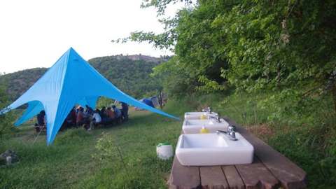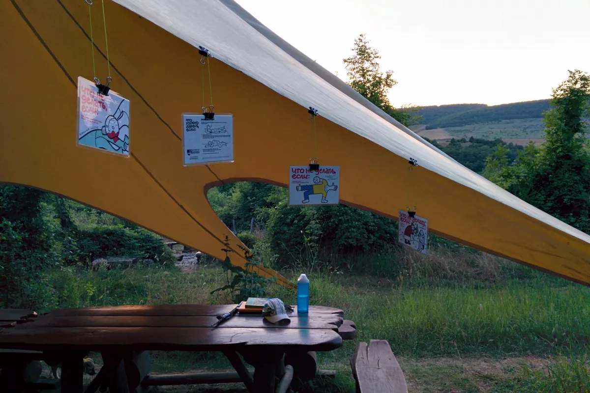 Каждый день предусмотрена насыщенная активная программа с физическими нагрузками. В свободное время на территории кемпинга для вас найдется много интересных занятий: рыбная ловля, скалолазание, катание на лошадях или ослах. Кроме того, по предварительной договоренности вы можете заказать групповой или индивидуальный трансфер на море в любое удобное для вас время. Ближайший пляж находится на удалении 20 км от кемпинга в Балаклаве.