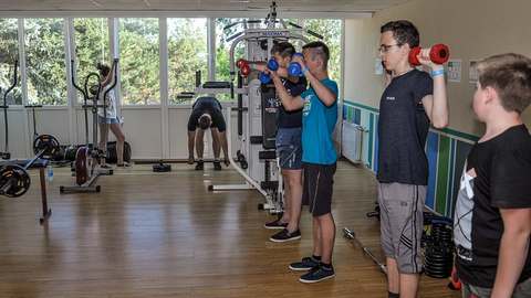 Для любителей игр с мячом мы предлагаем: футбол, волейбол, баскетбол, большой теннис, настольный теннис. Если ребенок с удовольствием выполняет силовые упражнения, то он сможет выбрать: спортивный зал с тренажерами, плавание, отжимание и подтягивание. Также ребенок может позаниматься танцами, йогой, карате, чирлидингом, посетить веревочный парк.