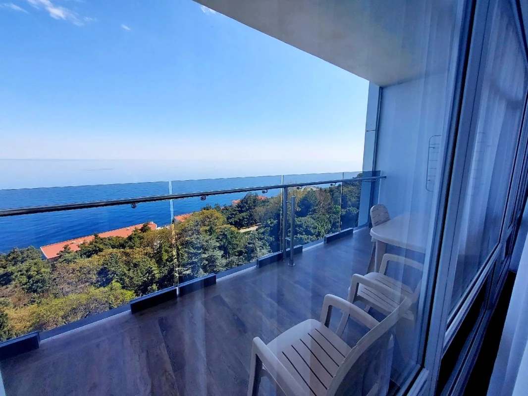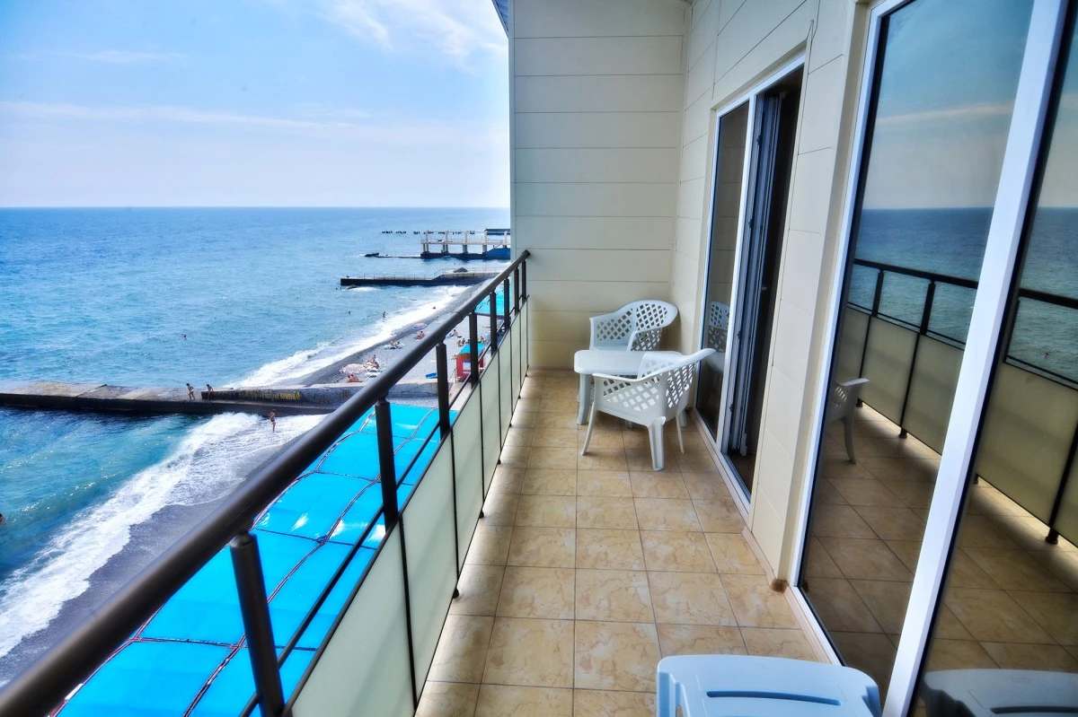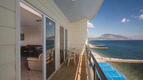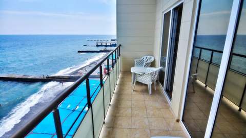 Площадь номера: 30 кв. м. В номере: двуспальная кровать, диван, прикроватные тумбы, набор мебели, Wi-Fi, кондиционер, телефон, чайник, телевизор, душ, туалет, холодильник, утюг, фен, сейф, набор посуды, халат и тапочки. Номера представлены в двух вариантах: с тёмной мебелью, просторной двуспальной кроватью, раскладным креслом или со светлой мебелью, двуспальной кроватью и односпальным диваном. Балкон с видом на море. Дополнительное место: одно (кресло-кровать или односпальный диван).