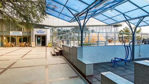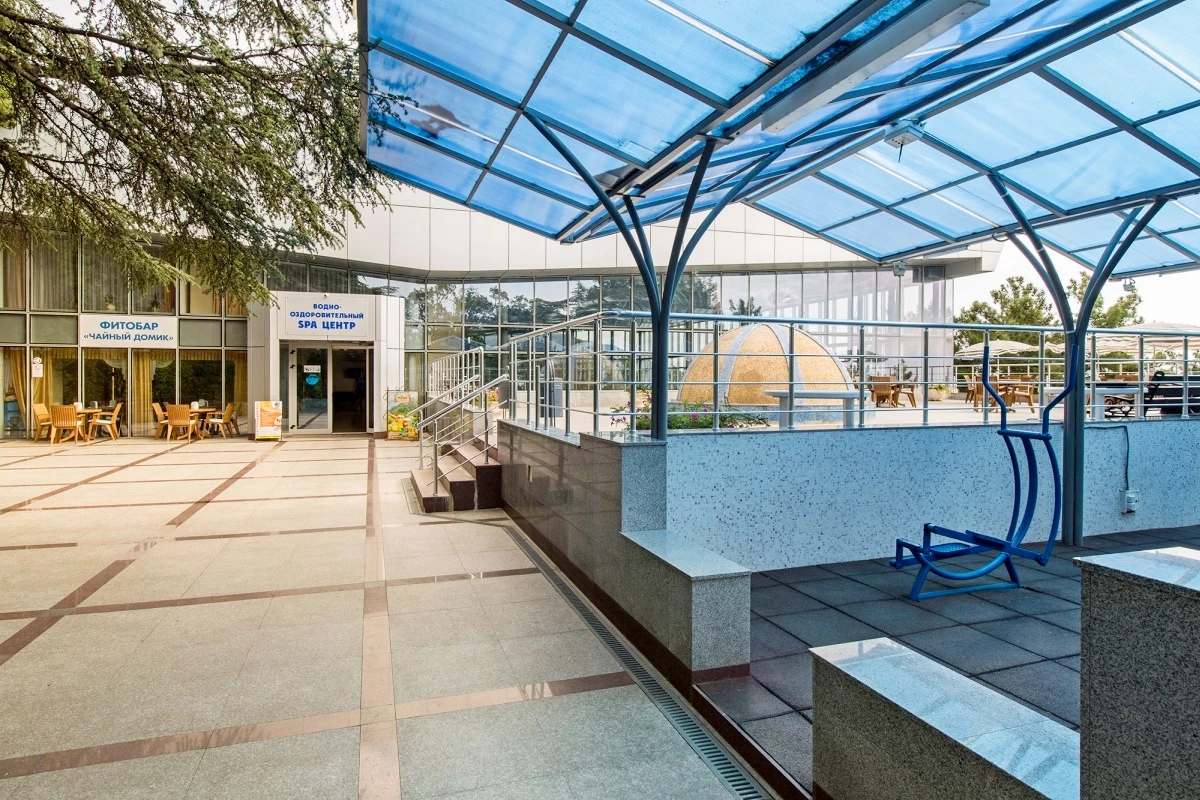 Спа-центр, банный комплекс (римская баня, русская, финская, хамам, инфракрасная сауна), крытый бассейн с морской водой и детским отделением, открытый бассейн с пресной водой и детским отделением, открытая охраняемая платная парковка, столовая, рестораны, бар у бассейна, бар на пляже, фитобар, магазин продуктов, библиотека. Комплекс многофункциональных спортивных площадок: поле для мини-футбола и баскетбола с покрытием «искусственная трава», волейбольное поле, теннисный корт с покрытием «искусственная трава», площадка с уличными тренажерами, площадка мини-гольфа. Современный тренажерный зал, бильярд, а также столы для настольного тенниса. Гости могут воспользоваться услугами прачечной, взять в прокат спортивный инвентарь, заказать трасфер, экскурсию. По всей территории санатория доступен Wi-Fi.