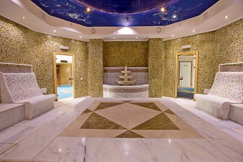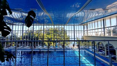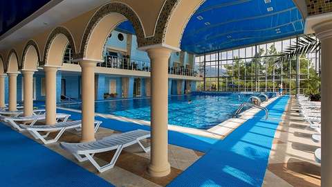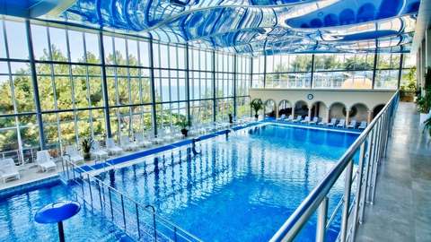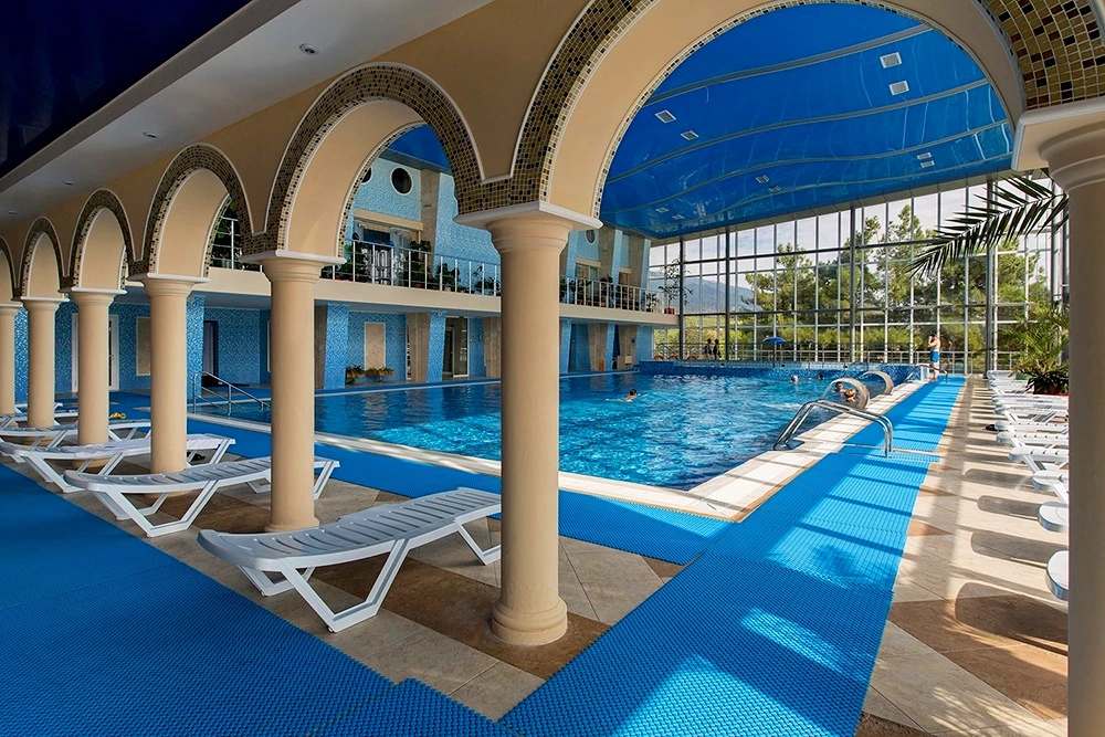 Крытый бассейн с подогреваемой морской водой расположен в спа-центре, состоит из основного и детского бассейнов. Площадь основного бассейна — 231 кв. м, длина — 21 метр, ширина — 11 метров, глубина — от 1,1 до 1,8 метров. Детский бассейн: ширина — 3 метра, длина — 11 метров, глубина — 0,75 метров.