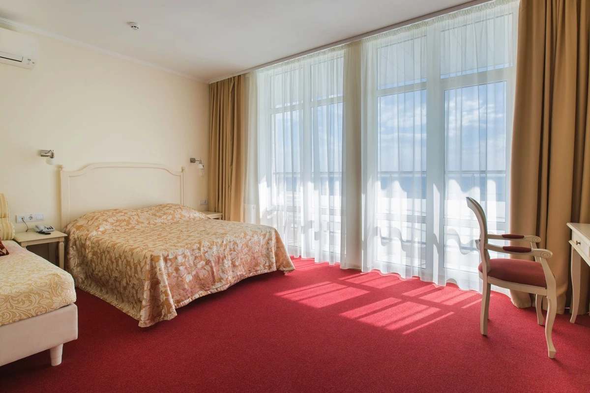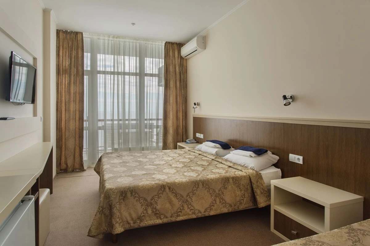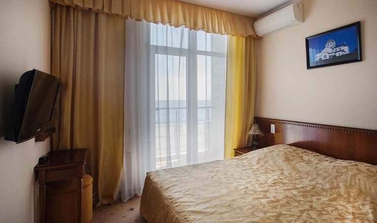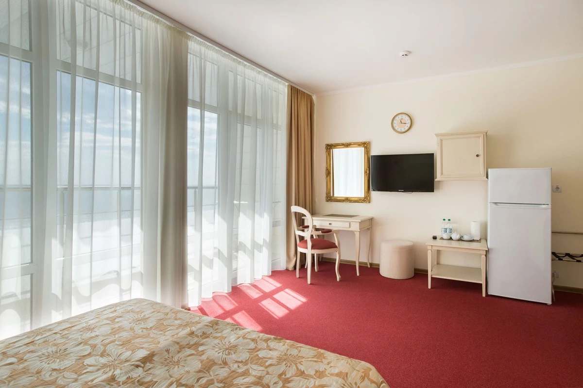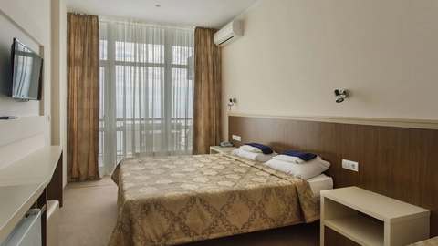 Площадь номера: 18 кв. м. В номере: две односпальные или одна двуспальная кровать, прикроватные тумбы, Wi-Fi, кондиционер, телефон, чайник, телевизор, душ, туалет, холодильник, фен, набор посуды. Балкон с видом на море, бассейн и реликтовый парк. Дополнительное место: кресло-кровать.