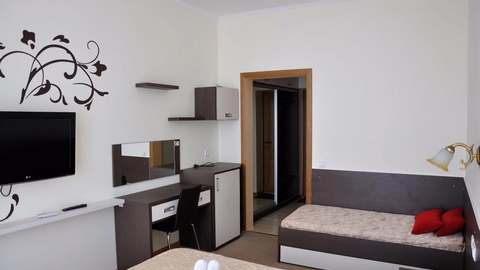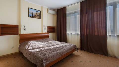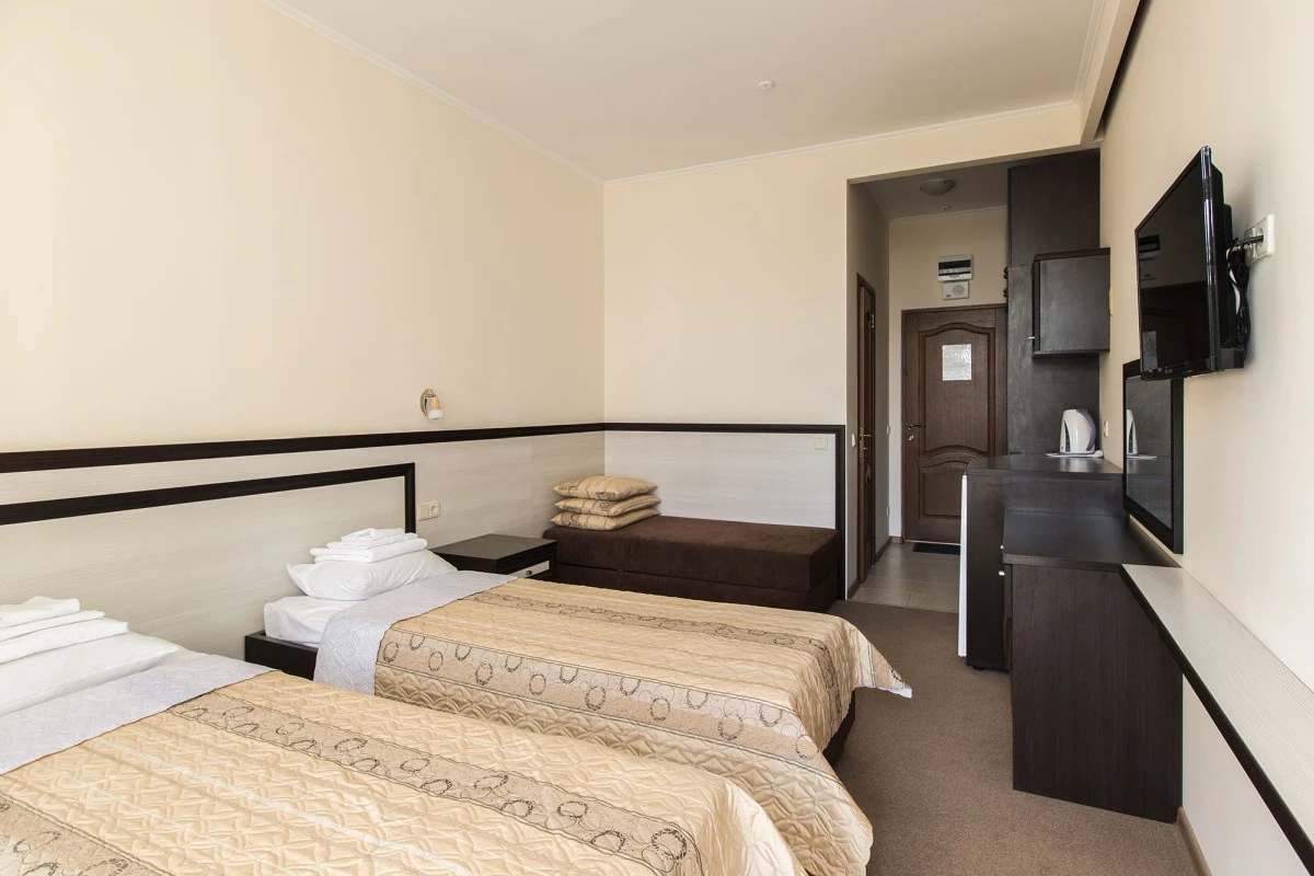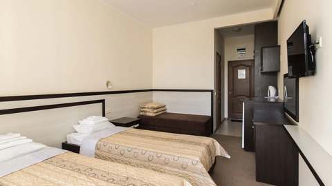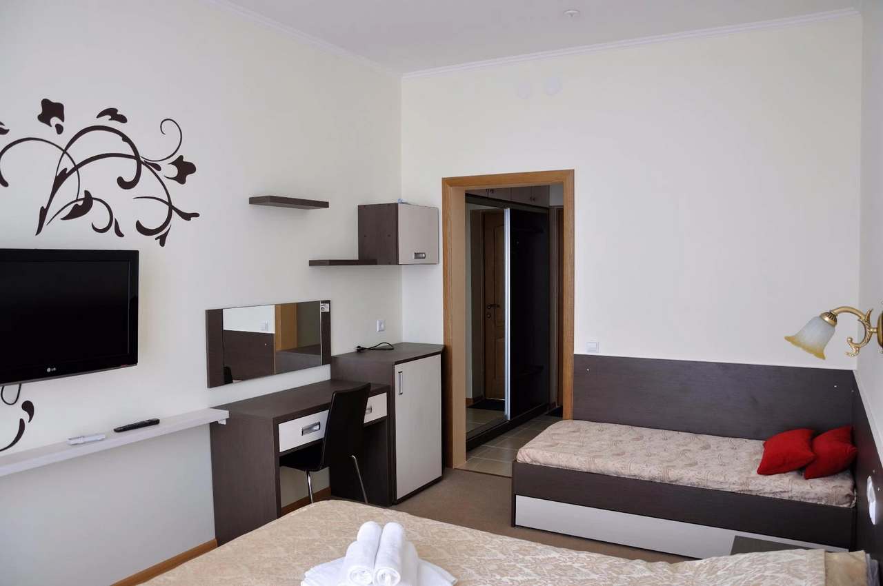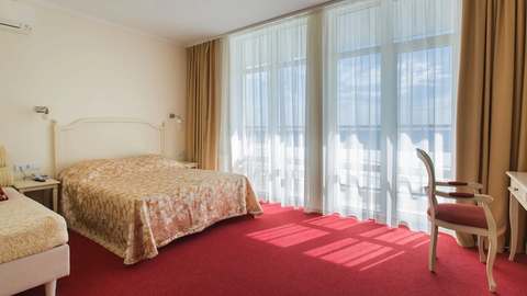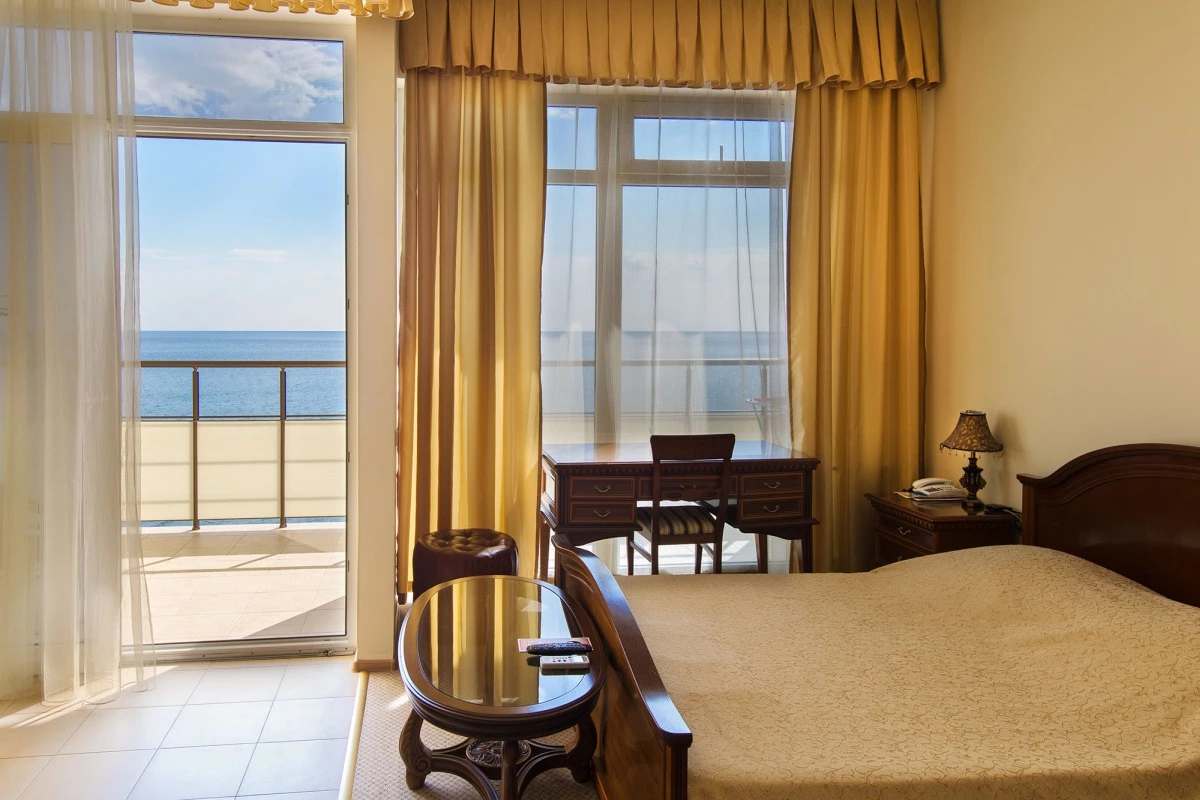 Площадь номера: 18 кв. м. В номере: две односпальные или одна двуспальная кровать, прикроватные тумбы, Wi-Fi, кондиционер, телефон, чайник, телевизор, душ, туалет, холодильник, фен, набор посуды. Балкон с видом на море, бассейн и реликтовый парк. Дополнительное место: кресло-кровать.