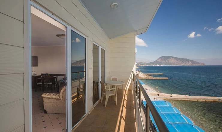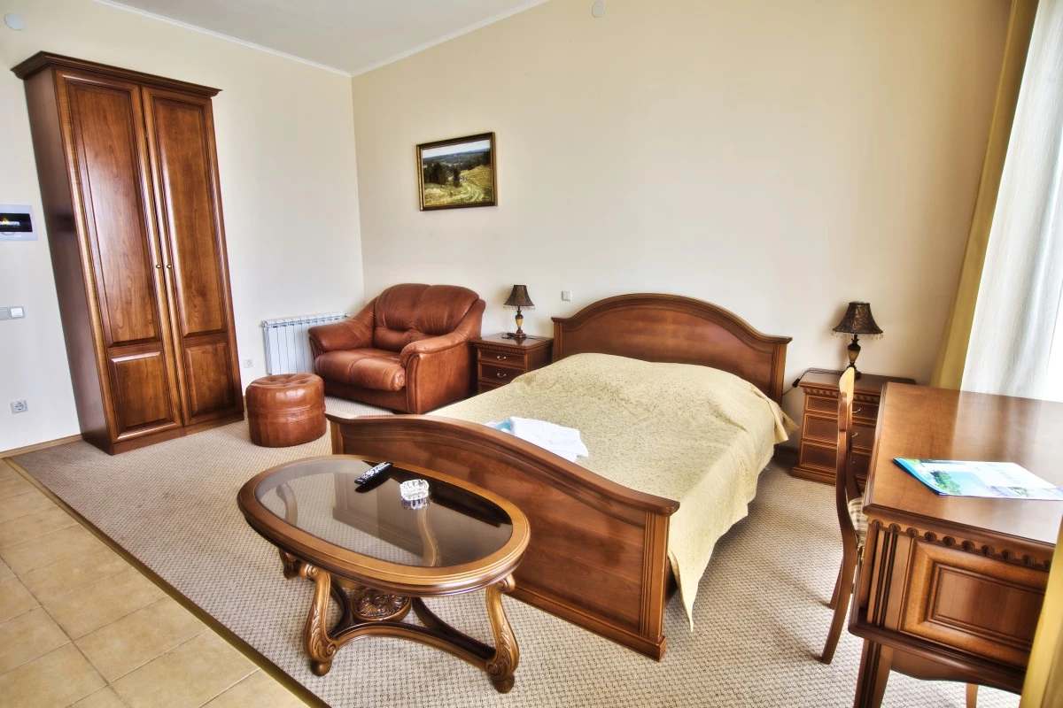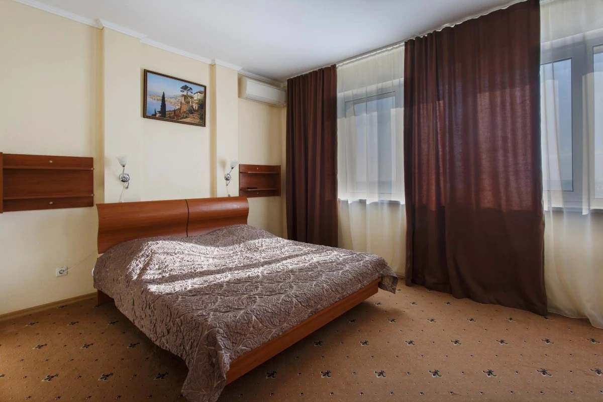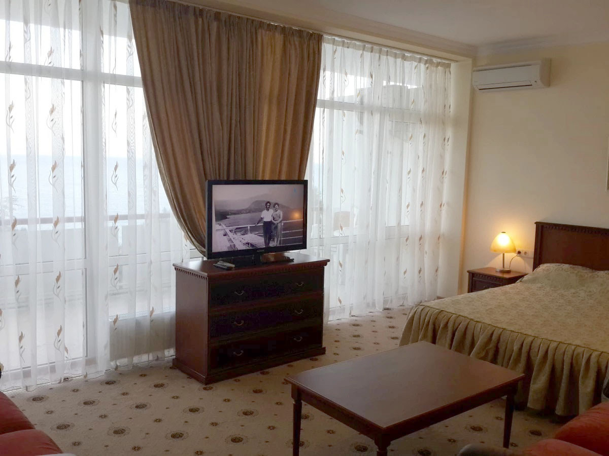 Площадь номера: 36 кв. м. В номере: двуспальная кровать, диван и кресла, Wi-Fi, кондиционер, сейф, телефон, чайник, телевизор, душ, туалет, холодильник, фен, посуда, утюг. Номера представлены в двух вариантах: на третьем этаже — с двумя раздельными кроватями, софой и светлой мебелью; на четвертом этаже — с одной двуспальной кроватью, тёмной мебелью. Открытый балкон с видом на море, бассейн и реликтовый парк. Дополнительное место: одно (еврораскладушка).