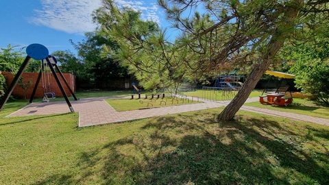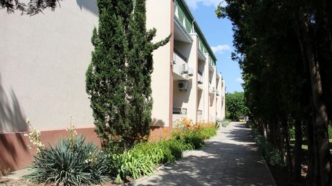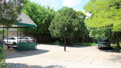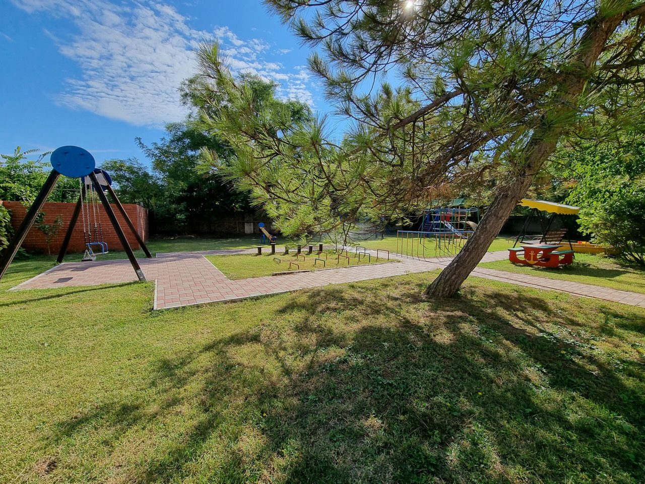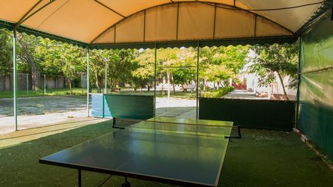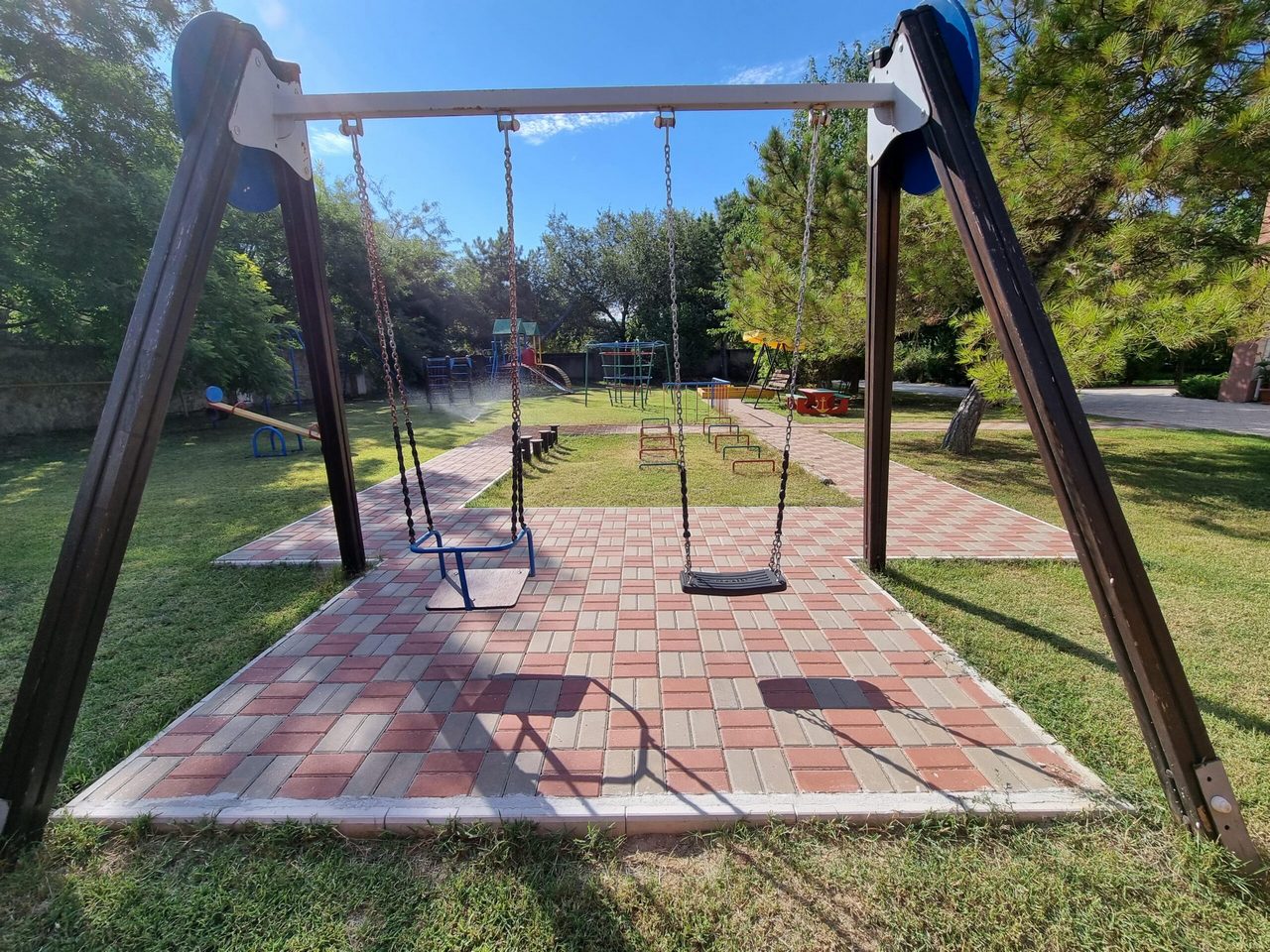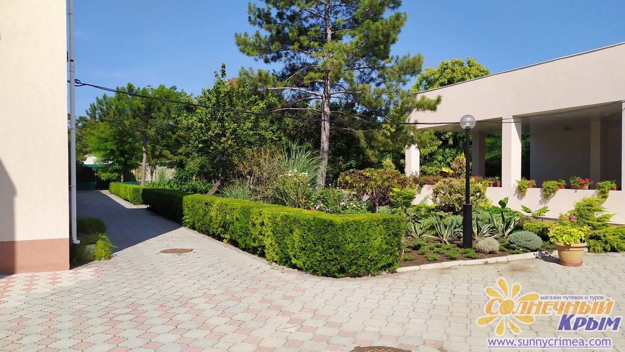 Огороженная благоустроенная зеленая территория. Автостоянка (бесплатно), детская площадка, столовая, библиотека, настольный теннис, пользование сейфом. Экскурсии по Евпатории и всему Крыму.