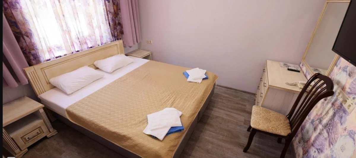 Площадь номера — 14–19 кв. м. В номере: одна или две односпальные кровати, мебель (тумбочка, шкаф, стол), кондиционер, холодильник, телевизор, Wi-Fi в номере, ванная комната с душем, фен, набор банных принадлежностей. Номера с балконом, вид на море.