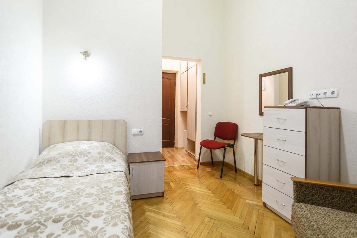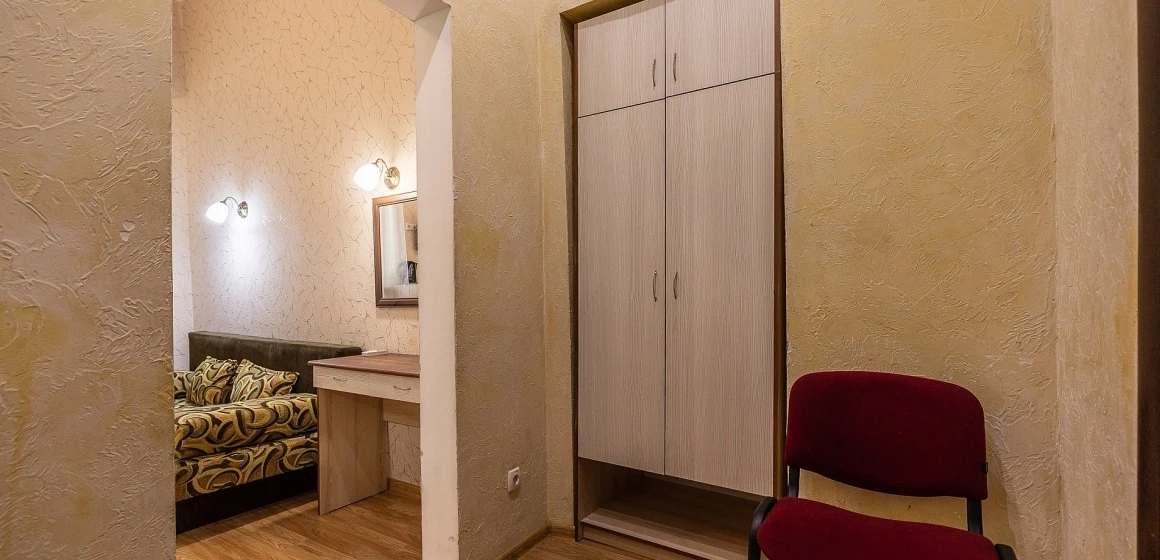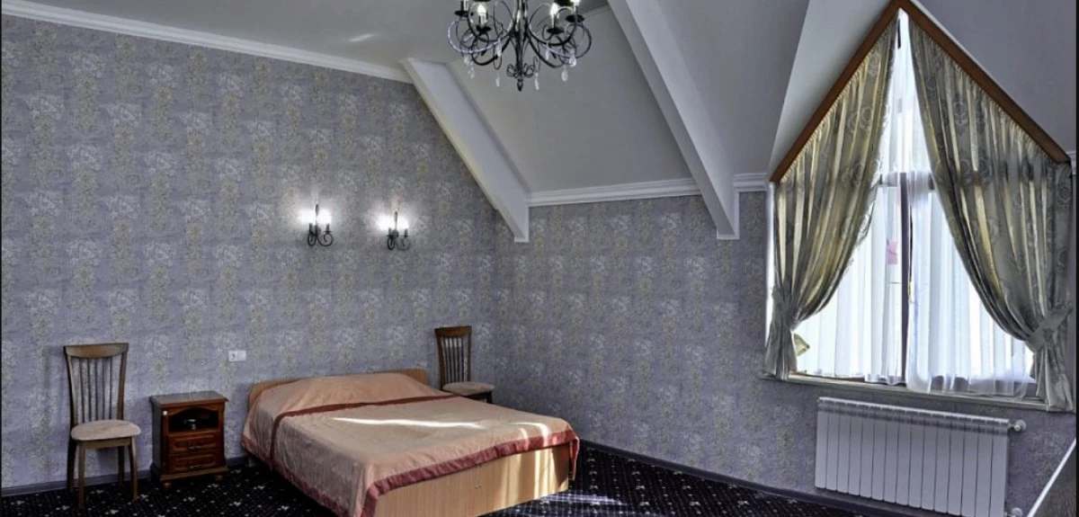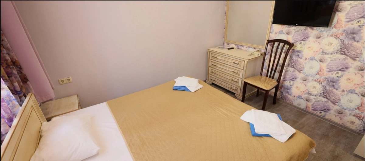 Площадь номера — 11 кв. м. В номере: одна односпальная кровать, мебель (тумбочка, шкаф, стол, стул), кондиционер, холодильник, телевизор, Wi-Fi в номере, ванная комната с душем, фен, набор банных принадлежностей. Номер без балкона с видом на Ай-Петри.