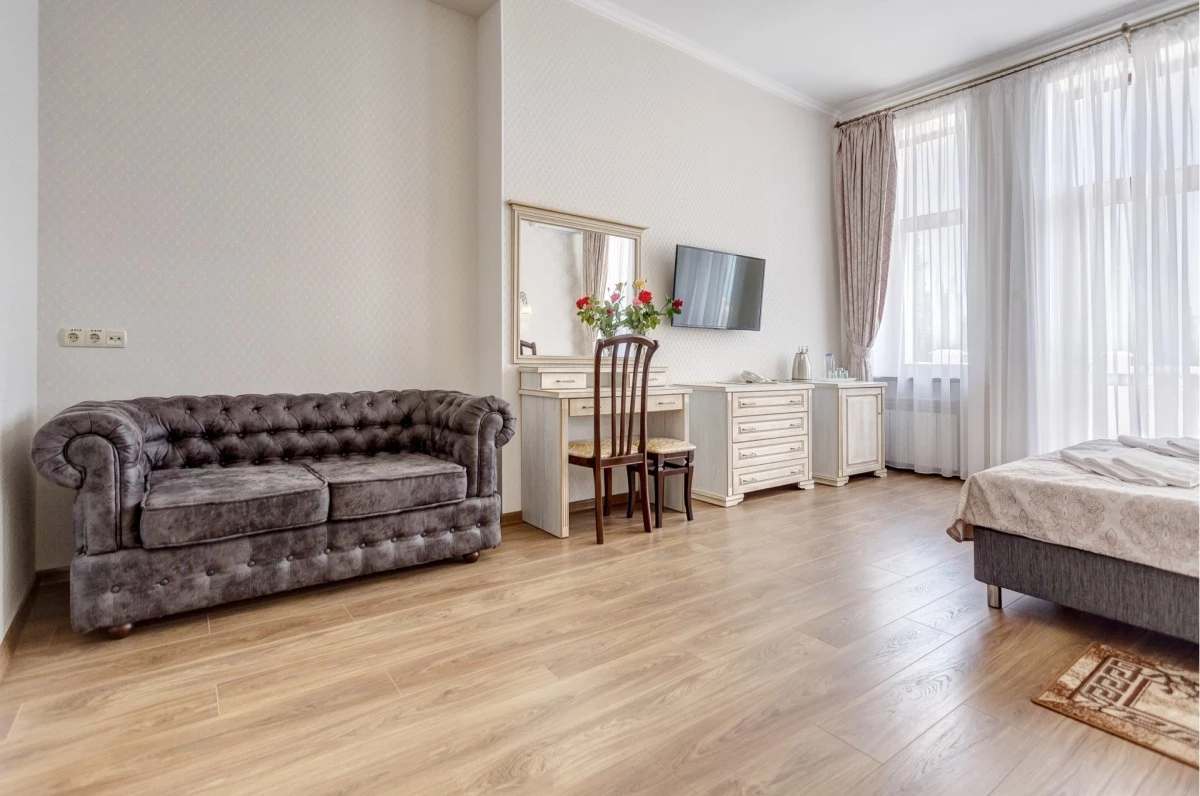 Площадь номера — 21–26 кв. м. В номере: одна двуспальная или две односпальные кровати, мягкая мебель (диван, кресло, бра), кондиционер, холодильник, телевизор, Wi-Fi в номере, электрочайник, чайная посуда, гладильная доска, утюг, ванная комната с душевой кабиной, фен, набор банных принадлежностей. Номер с балконом, вид на море, горы или парк санатория.