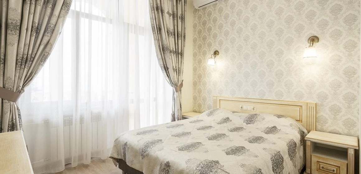 Площадь номера — 89–125 кв. м. В номере: две спальни, гостиная, прихожая, мебель, двуспальная кровать, кондиционер, холодильник, телевизор, Wi-Fi в номере, кухня с электроплитой, вытяжка, стиральная машина, электрочайник, столовая и чайная посуда, гладильная доска, утюг, две ванных комнаты с ванной или душем, фен, набором банных принадлежностей. В номере два балкона.
