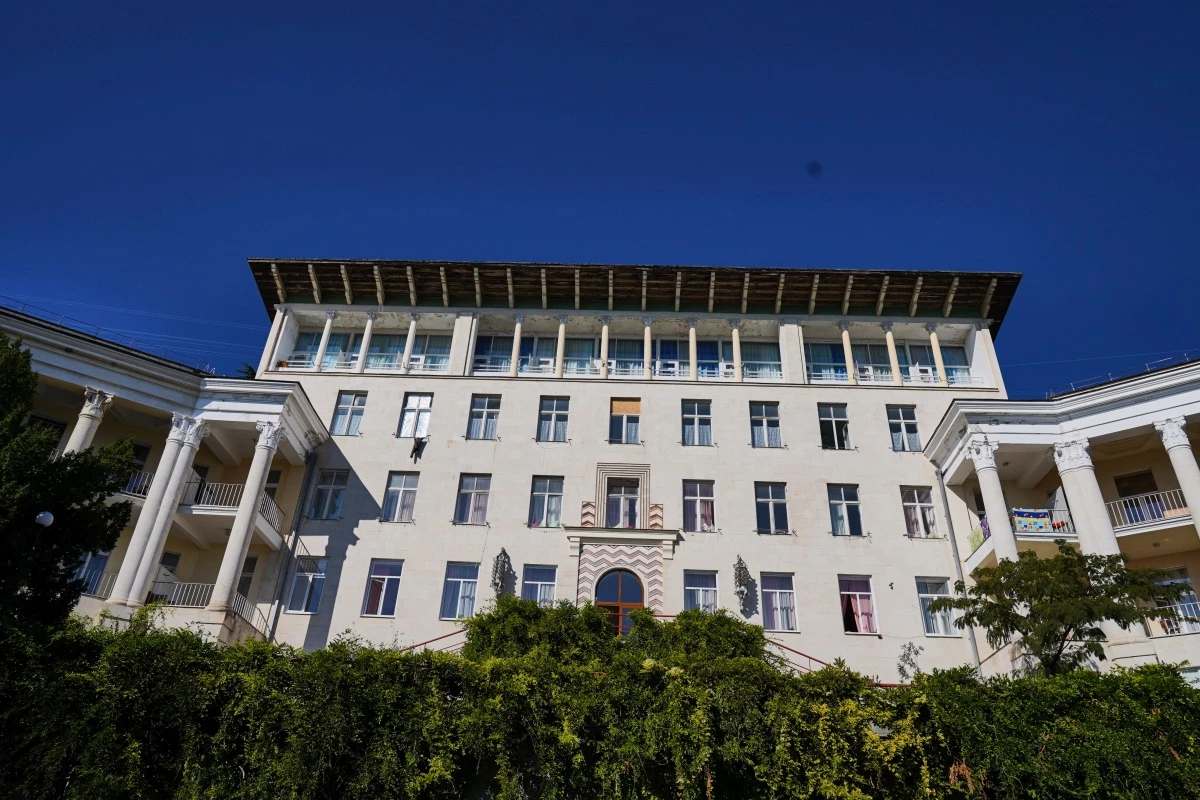 - Корпус № 1 — 5-этажное здание. Самое большое центральное здание санатория. В корпусе: номерной фонд и основная лечебная база лечебно-диагностического отделения (кабинеты врачей-терапевтов, массажные кабинеты, кабинет функциональной диагностики, физиотерапевтический кабинет, лаборатория, ЛОР, водолечебница, кабинеты узких специалистов). Расстояния: до административного корпуса — 5 минут, до канатной дороги на пляж — 5 минут, до столовой — 7 минут.