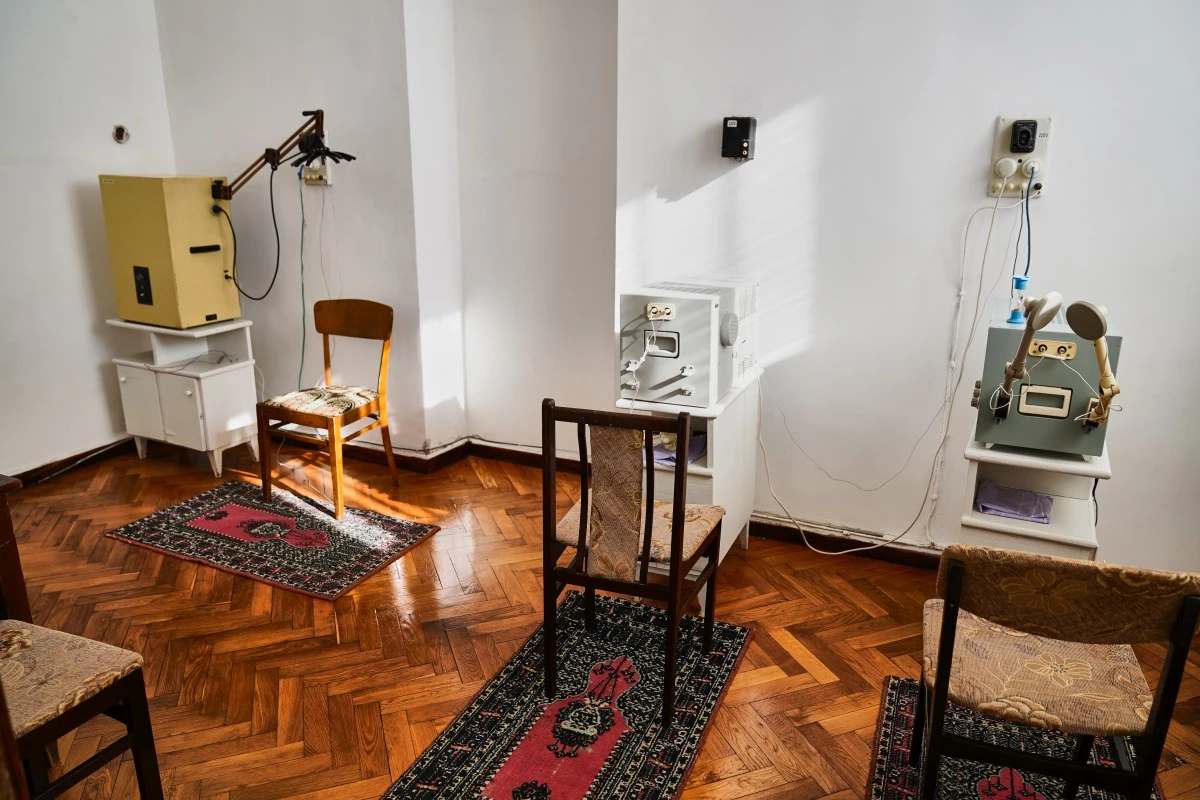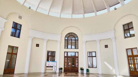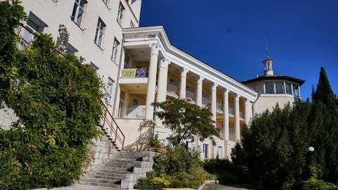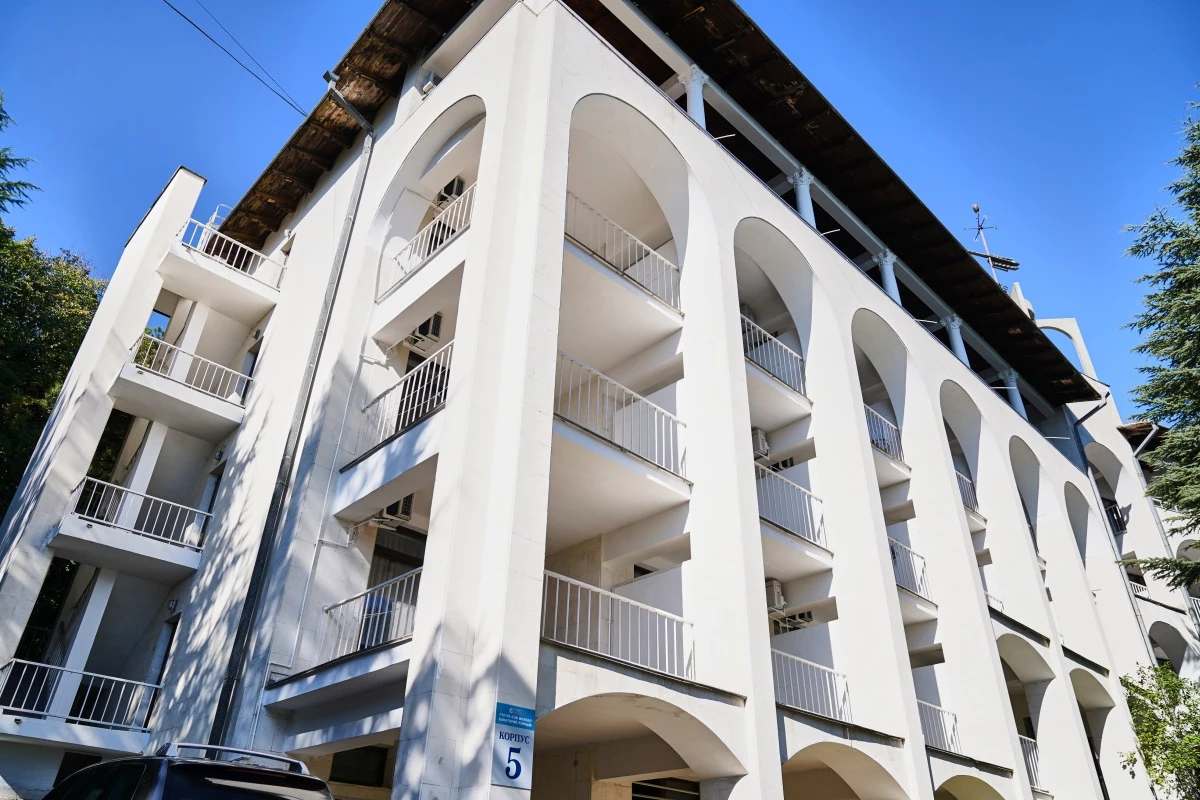 - Корпус № 5 — 4-этажное здание. Второе по размеру в санатории. До столовой — 5 минут, до канатной дороги — 10 минут. На первом и втором этажах расположены медицинские кабинеты. Номерной фонд — на всех этажах.