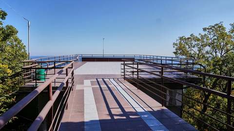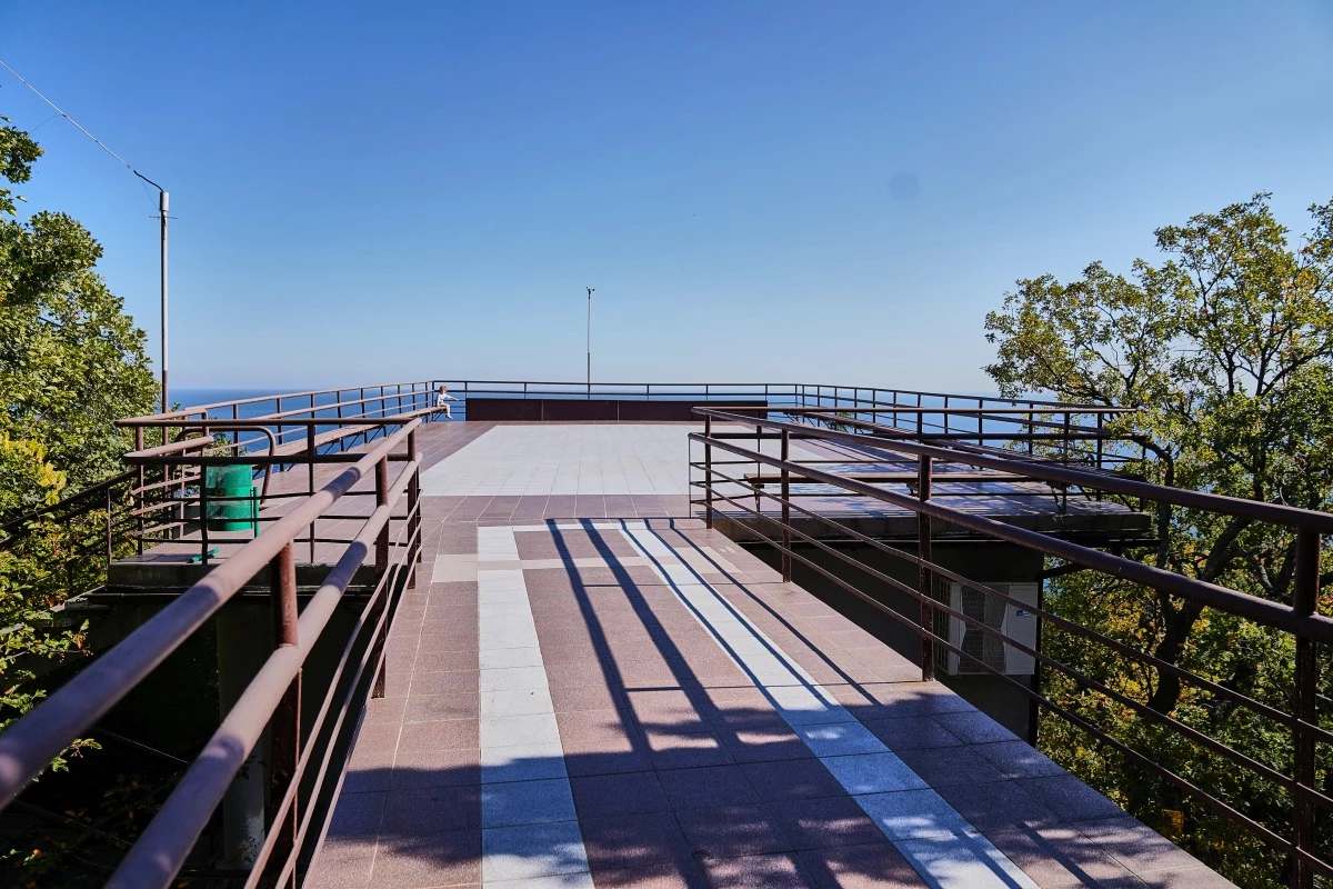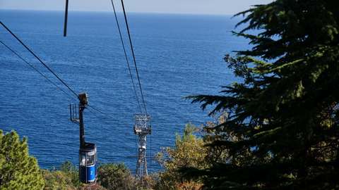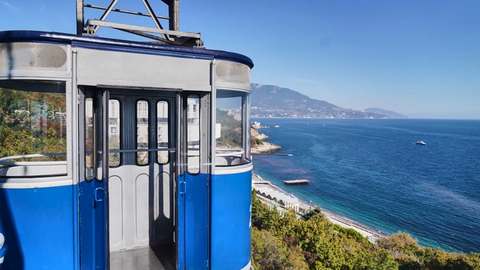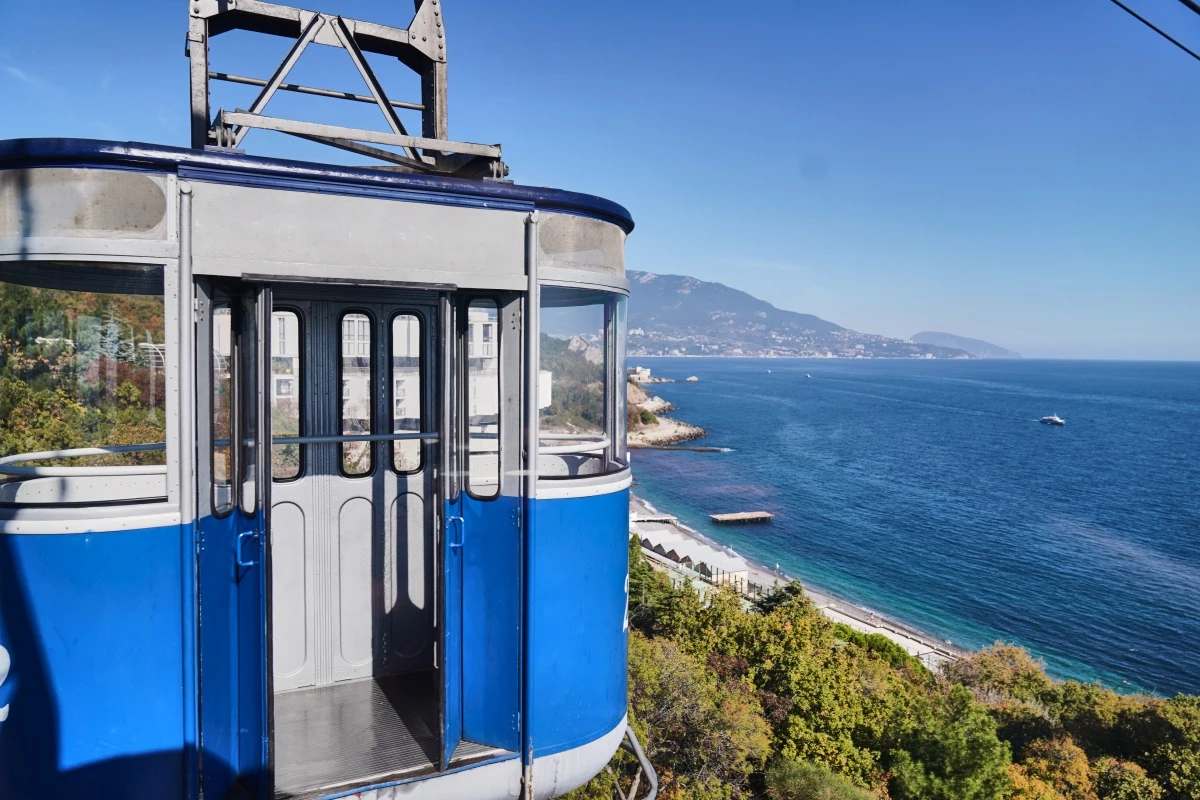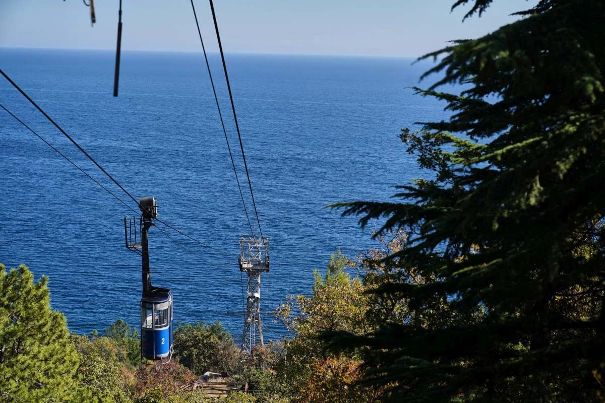 Спуск к морю и благоустроенному пляжу — на канатной дороге санатория.