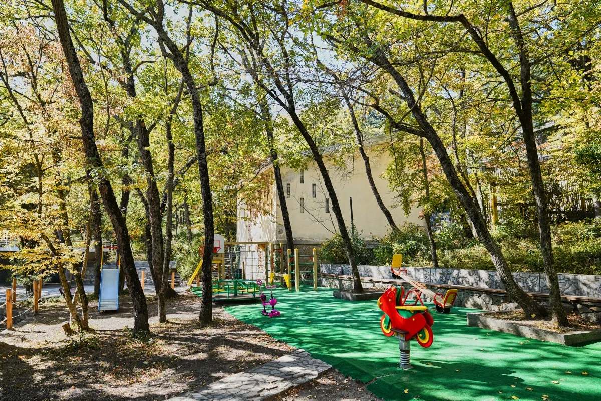 Бары, теннисный корт, спортплощадки для игры в бадминтон, баскетбол, волейбол, тренажерные залы (один из них расположен на пляже), закрытый бассейн с подогреваемой морской водой, сауна, бильярд, библиотека, парикмахерская, почтовое отделение, экскурсионное бюро, кинотеатр (180 мест); бар и фитобар; два конференц-зала (на 20 и 40 мест); в пешей доступности — 2 продуктовых магазина. К пляжу ведет подвесная канатная дорога, по парку санатория проложены маршруты для оздоровительной ходьбы.