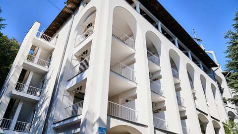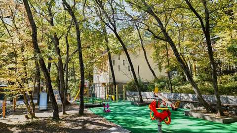 - Корпус № 4 — 2-этажное здание. Каждый номер имеет отдельный вход. В номерах на первом этаже нет балконов, вход через небольшую террасу. 5 минут до подвесной канатной дороги, 7 минут до столовой, 10 минут до бассейна.