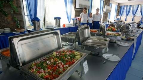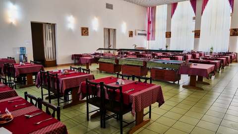 3-разовое питание по системе «Шведский стол». Возможна организация индивидуального диетического питания (блюда диетического питания отмечены табличками с номером диеты). Лечебное питание назначает только квалифицированный лечащий врач на основе рекомендованных диет.