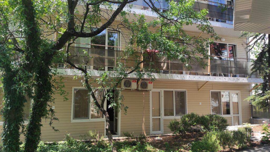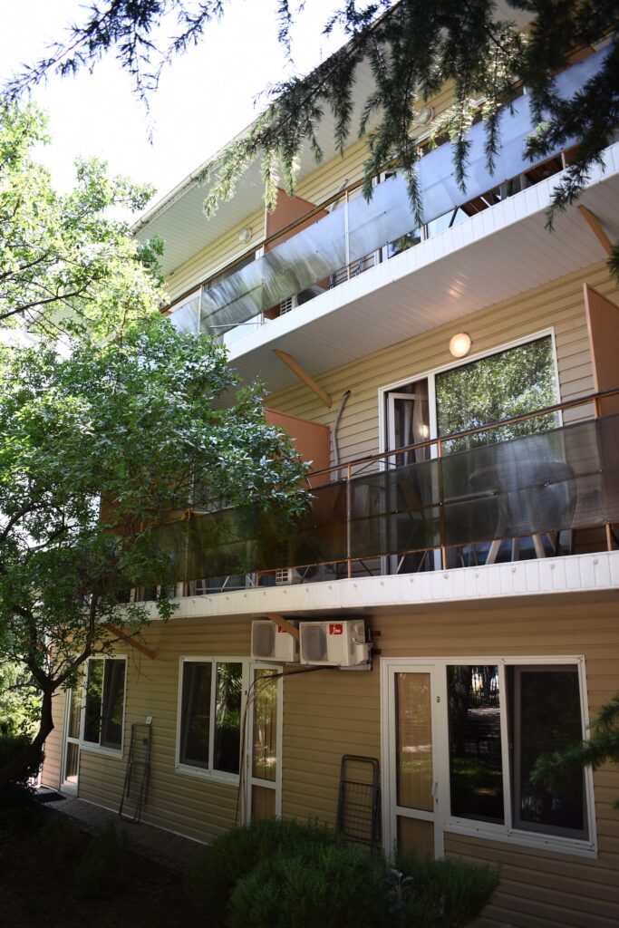 Корпуса со всех сторон окружает лесо-парковая зона: крымская сосна, можжевельник, пальмы и кипарисы.