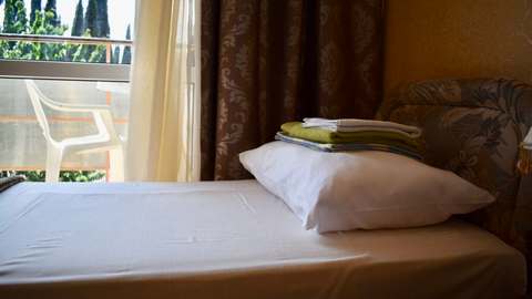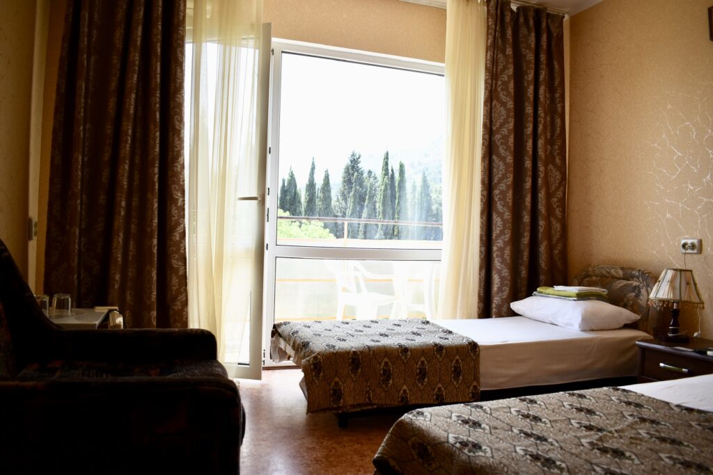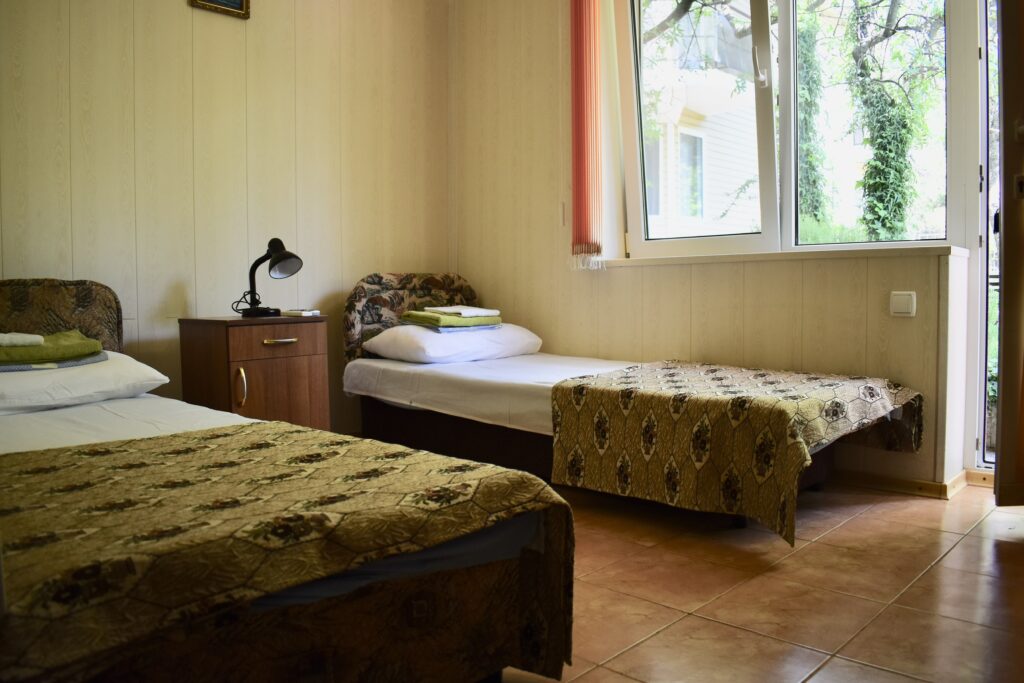 2-местные 1-комнатные номера с удобствами (совмещенный санузел: умывальник, душевая кабинка, туалет, фен). В номере: 2 раздельные кровати, тумбочки, шкаф, холодильник, ТВ, кондиционер. Расположены на 2—3-м этажах в корпусах 1, 2. Балкон с летней мебелью с боковым видом на море или видом на парк. Площадь 15 кв. м. Дополнительное место – еврораскладушка или кресло-кровать. Смена белья и полотенец: каждый 4-й день или по требованию гостя.