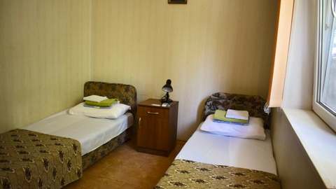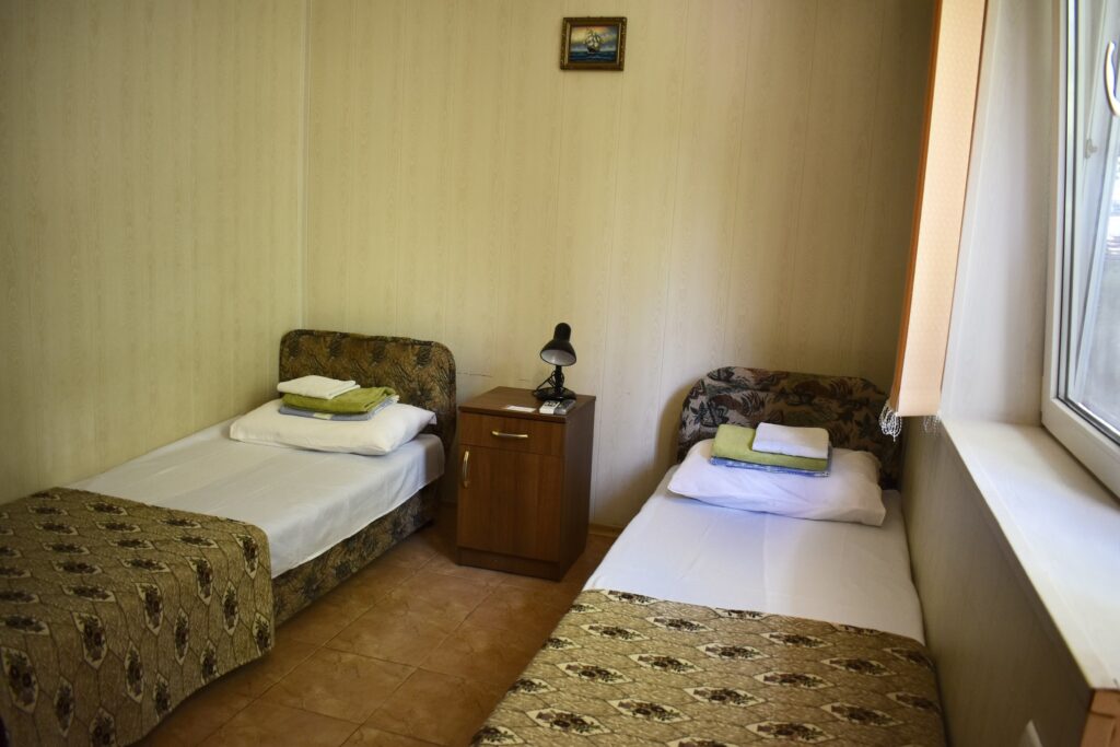 2-местные 1-комнатные номера с удобствами на блок (на блок: умывальник, душ, туалет), холодильником, ТВ. 1-й этаж, без балкона. Кровати раздельные.