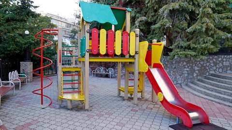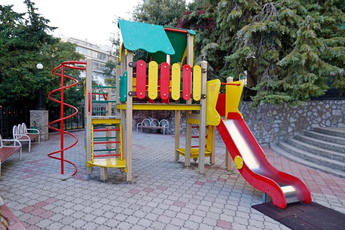 Для детей: детская площадка с качелями, горкой, игровыми и спортивными комплексами.