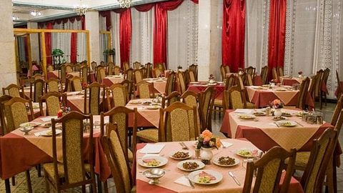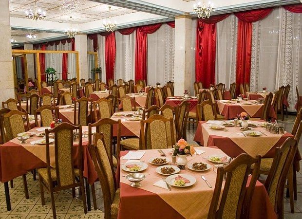 Полный пансион по системе «шведский стол», 15 видов диет. Столовая № 1 расположена возле корпусов 1 и 2. Столовая № 2 расположена возле корпуса № 3. Все залы оборудованы кондиционером, линией самообслуживания. При наличии у гостя аллергии на какой-то продукт, он может быть заменен равноценным по калорийности компонентом. Обо всех особенностях питания необходимо написать в анкете или сказать диетсестре.