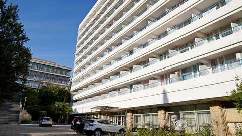 • Корпус № 1 — 10-этажное здание с лифтом в 150 метрах от моря и в 700 метрах от Медицинского центра санатория.