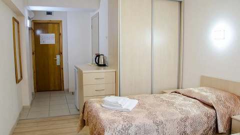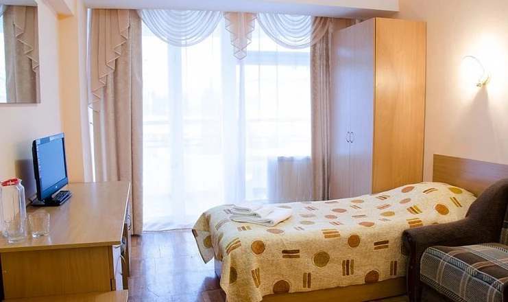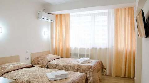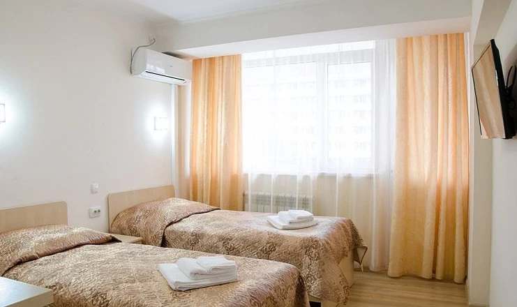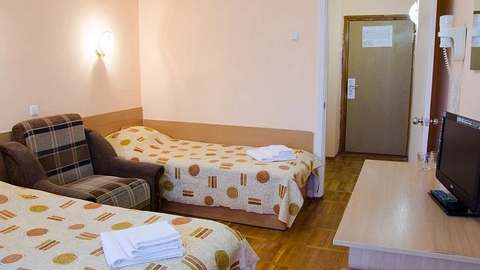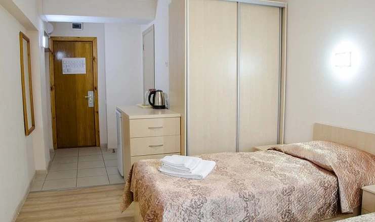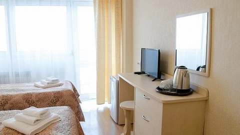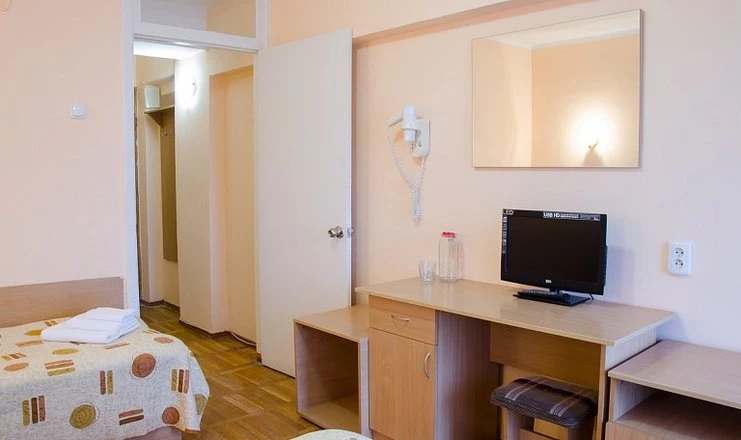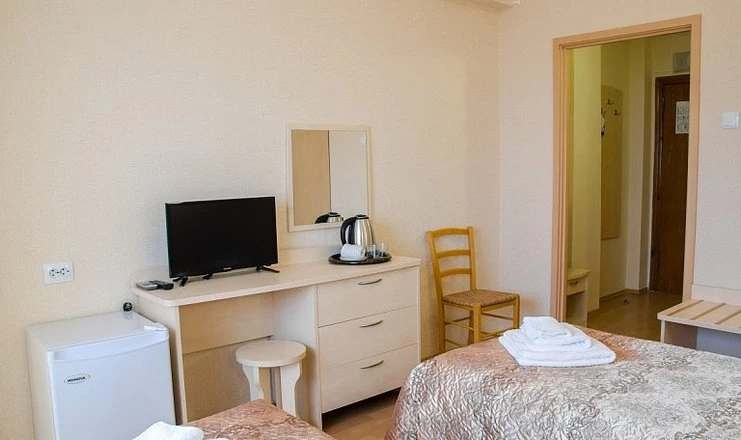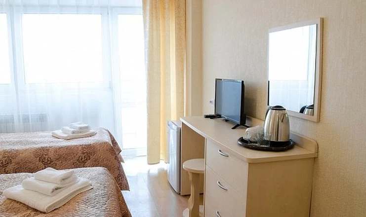 Площадь номера: 18 кв. м. В номере: односпальные кровати, холодильник, телевизор, зеркало, стол, стулья, тумбы, шкаф для одежды, кондиционер, фен, электрочайник, совмещенный санузел (душ), балкон. Дополнительное место: кресло-кровать или раскладушка.