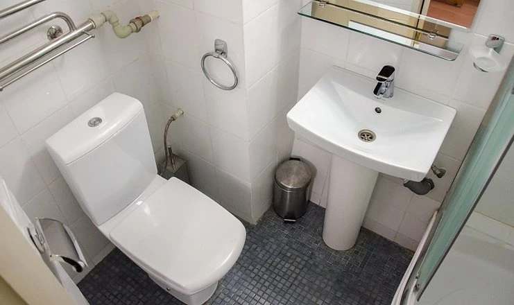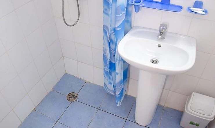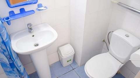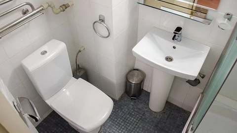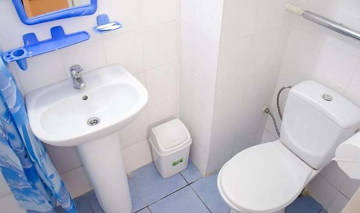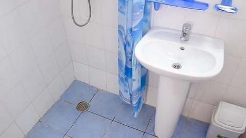 - в туалетной комнате: душ без поддона, а вода по щиколотки; мыло паровозное (не клали бы вообще), а туалетная бумага самого низкого качества и балансирует на крышке унитаза (держатель отломан) а полотенца повесить не на что (крючки в отсутствии);