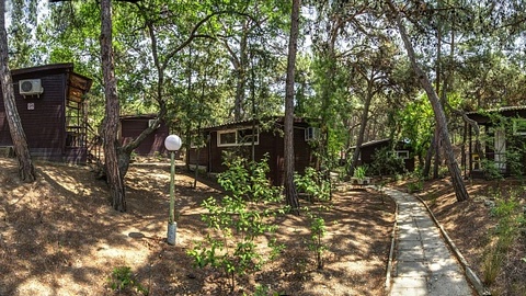 - 102 домика, расположенных в можжевеловой роще на территории отеля в 50—300 метрах от моря.