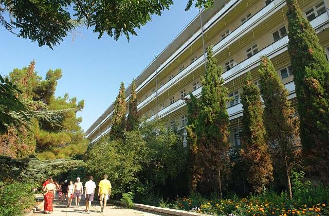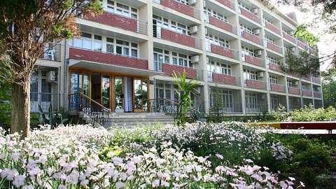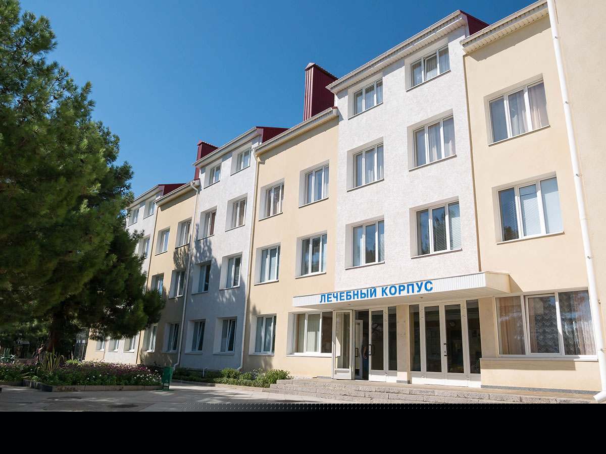 - Административный корпус — 4-этажное здание без лифта, номера без балконов, номерной фонд — 3—4-й этажи, 1—2-й этаж — медицинские кабинеты. 250 метров до пляжа.