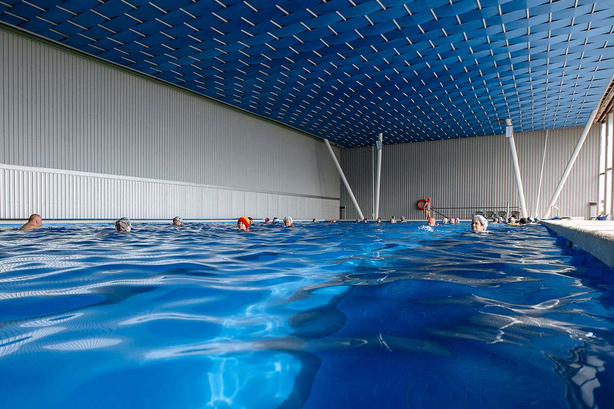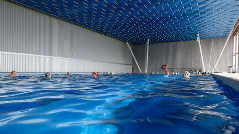 Закрытый плавательный бассейн с подогреваемой морской водой находится в отдельном корпусе. Длина плавательной дорожки — 25 метров, глубина бассейна — от 1,5 до 3 метров, температура воды — 25—28°C. В бассейне постоянно дежурит матрос-спасатель. Технические особенности бассейна позволяют проводить учебные тренировки и спортивные соревнования. В здании бассейна находятся сауна, душ Шарко и циркулярный душ.