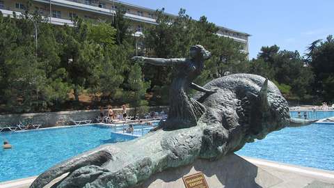 Для детей: детская анимация, площадки, детская комната с воспитателем, детская зона в бассейне.