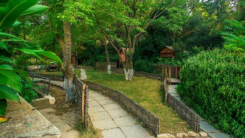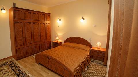 Номер со всеми удобствами, холодильником, телевизором, телефоном. Все номера кондиционированы. Питание трехразовое в ресторане «Шелковый путь» (в сезон).