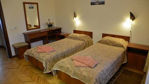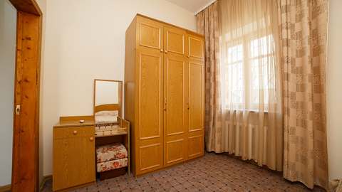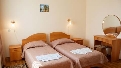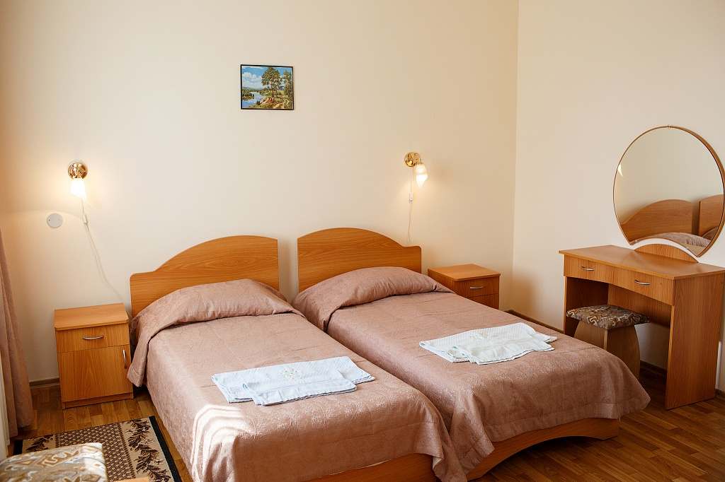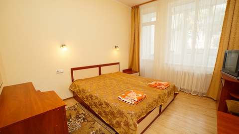 Номера с удобствами (совмещенный санузел с ванной). В номере: 2 раздельные кровати, телевизор, холодильник, кондиционер, набор мебели, вид на парковую территорию. Балконов нет. Дополнительное место: еврораскладушка.