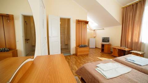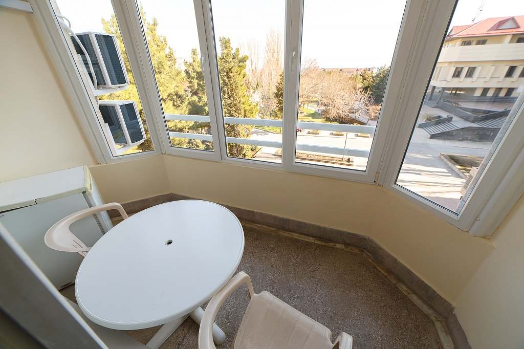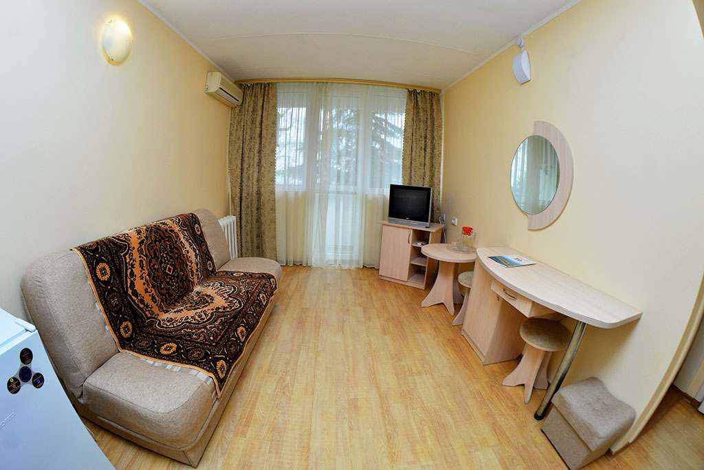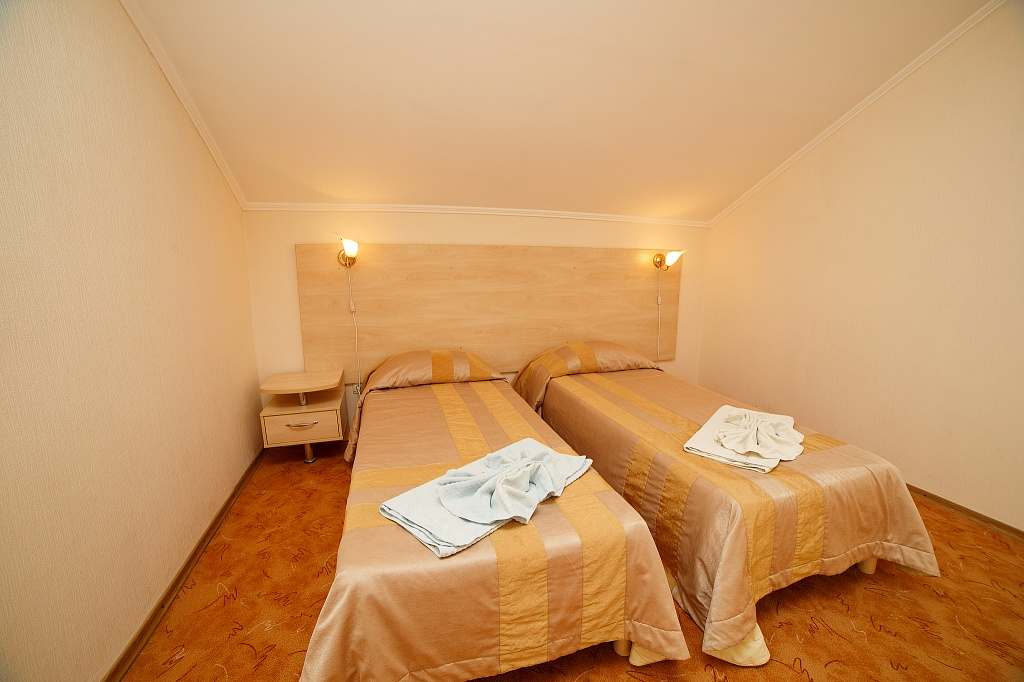 Номер с удобствами (совмещенный санузел с ванной или душем). В номере: 2 раздельные кровати, телевизор, холодильник, кондиционер, телефон, набор мебели, лоджия. Дополнительное место: еврораскладушка (в некоторых номерах — кушетка).