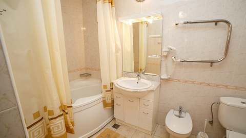 Номера с удобствами (совмещенный санузел с ванной, биде). В номере: 2-спальная кровать (или две 2-спальные кровати), телевизор, холодильник, кондиционер, набор мебели. Лоджия. Дополнительное место: раскладной диван, 2-спальная кровать.