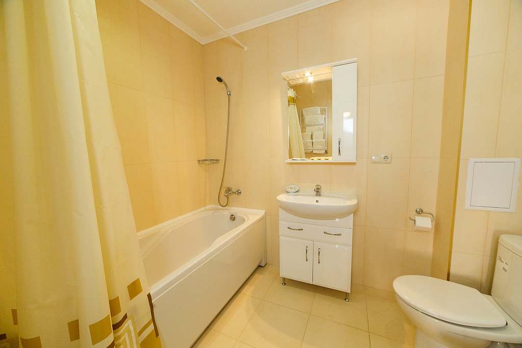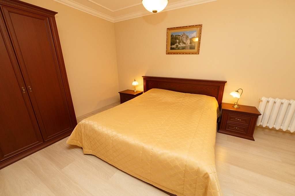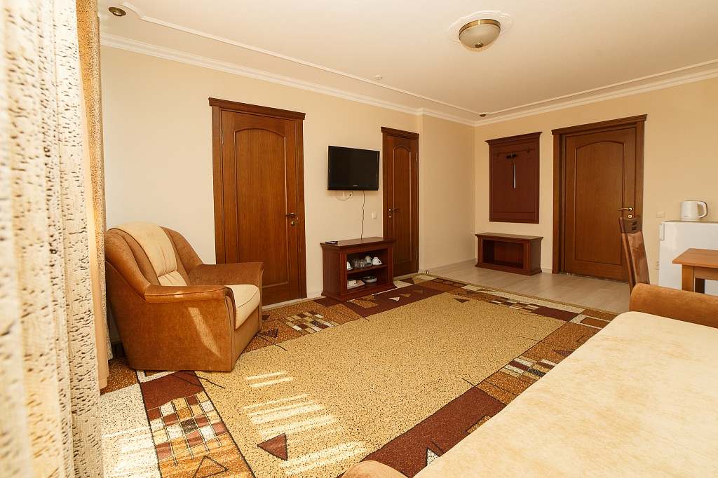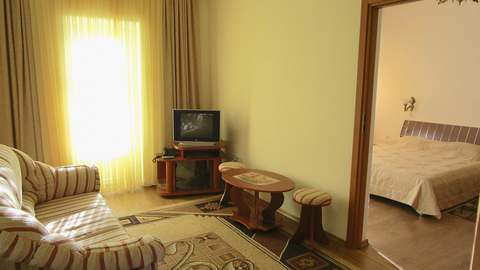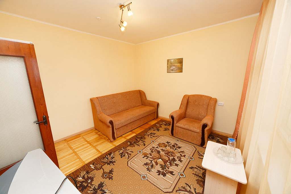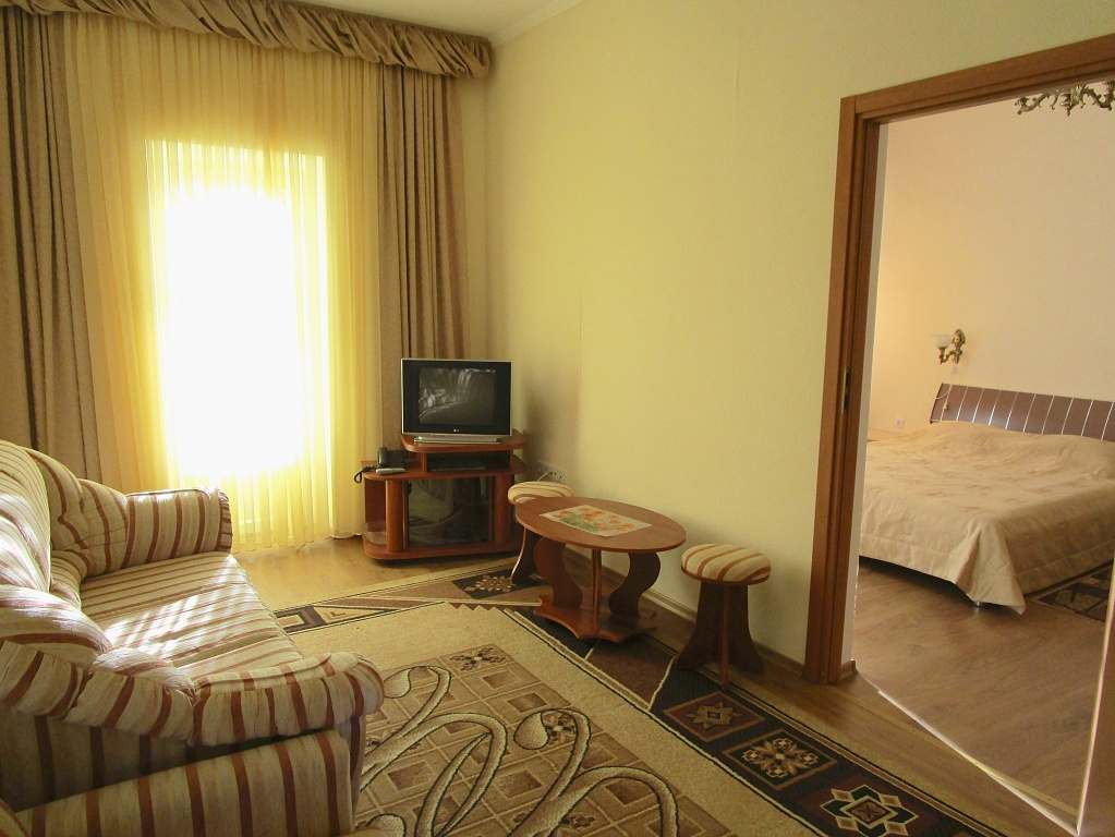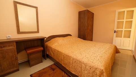 Номера с удобствами (совмещенный санузел с ванной, биде). В номере: 2-спальная кровать, диван, телевизор, холодильник, кондиционер, набор мебели, просторная лоджия. Дополнительное место: раскладной диван.