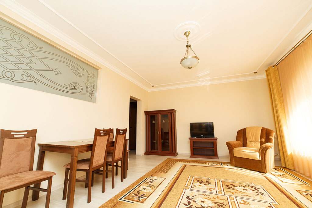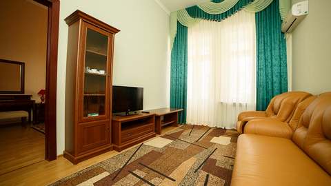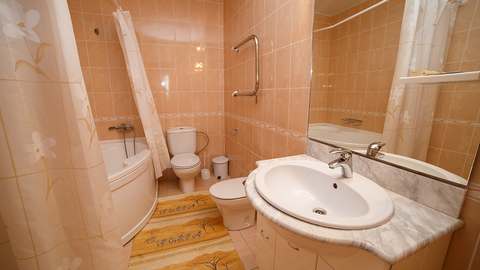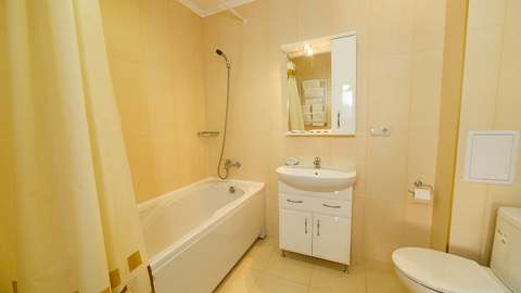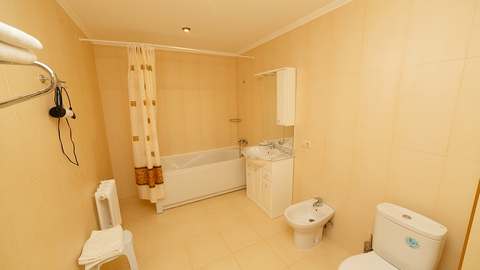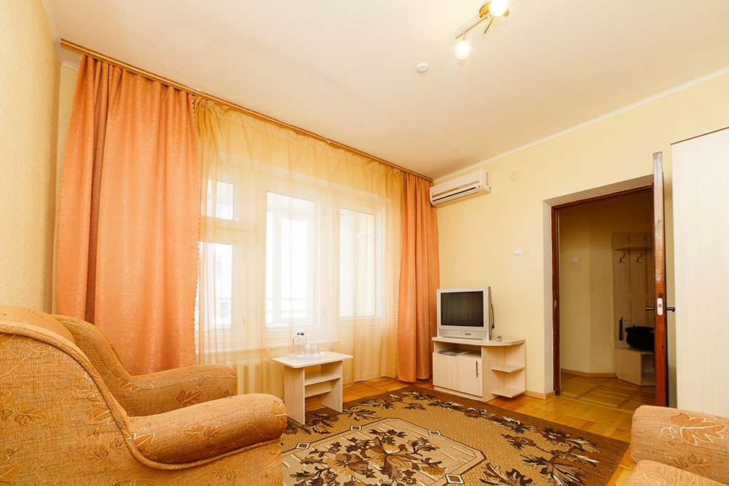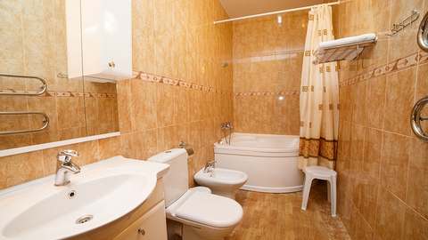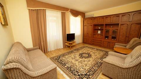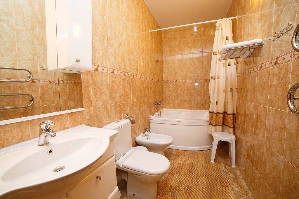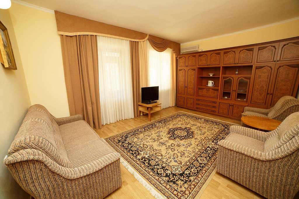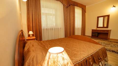 Номера с удобствами (совмещенный санузел с ванной, биде). В номере: 2-спальная кровать, диван, телевизор, холодильник, кондиционер, набор мебели, просторная лоджия. Дополнительное место: раскладной диван.