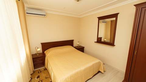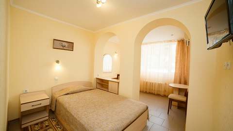 Номера с удобствами (совмещенный санузел с ванной/душем). В номере: 2-спальная кровать, телевизор, холодильник, кондиционер, набор мебели. Дополнительное место: раскладной диван. Номера в корпусе № 7 имеют отдельный вход, веранда не во всех номерах.