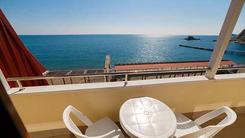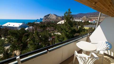 Номера с удобствами (совмещенный санузел с ванной/душем). В номере: 2 раздельные кровати, телевизор, холодильник, кондиционер, телефон, набор мебели, балкон. Вид на море. Дополнительное место: раскладной диван.