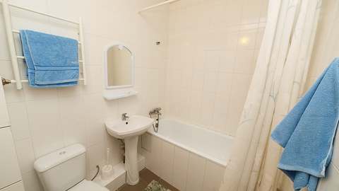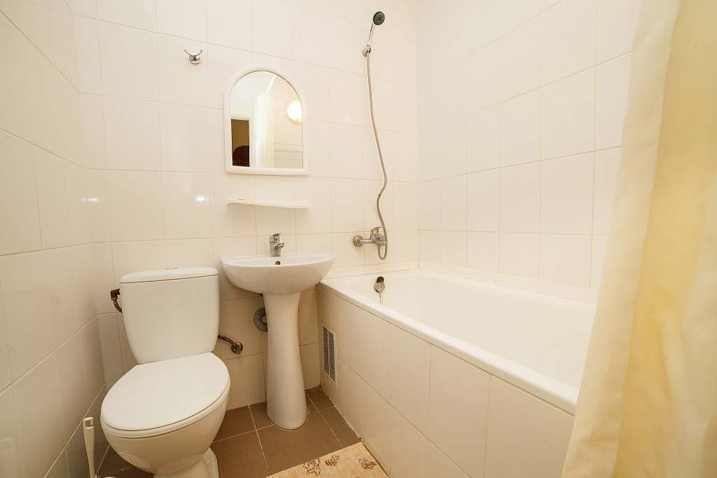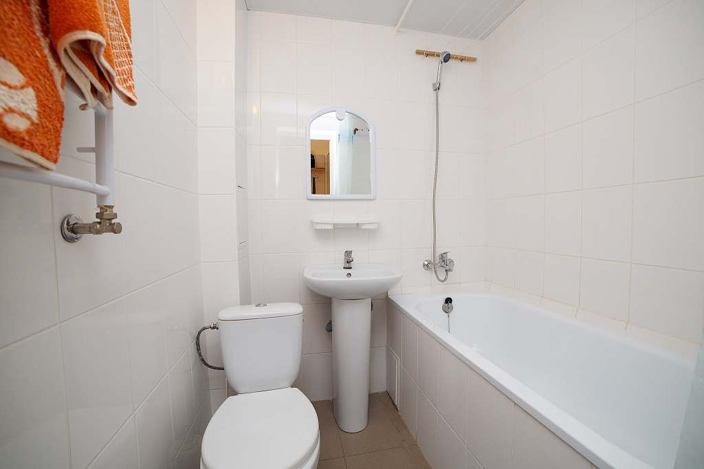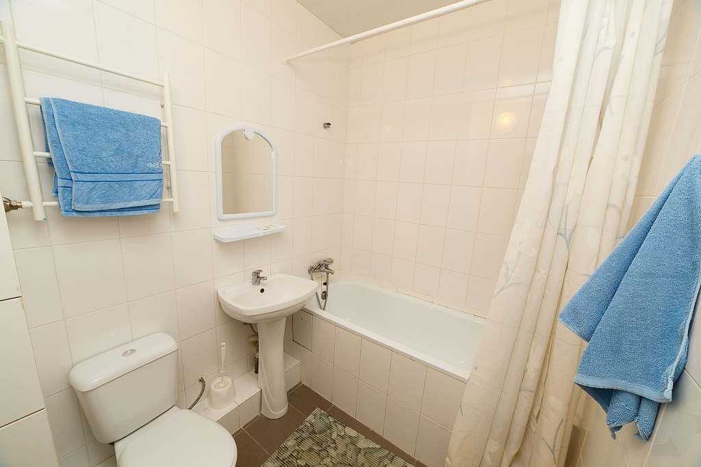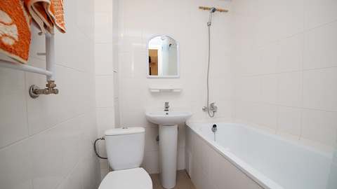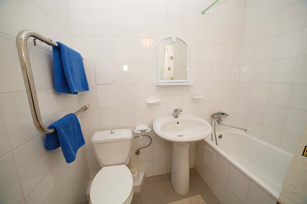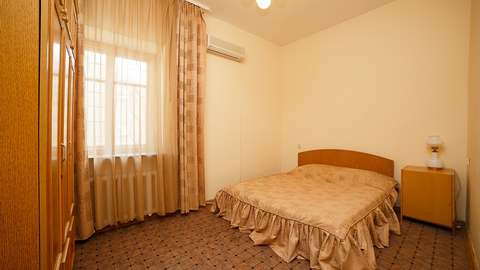 Номер с удобствами (совмещенный санузел с ванной). В номере: 2-спальная кровать, телевизор, холодильник, кондиционер, набор мебели, балкона нет, предцокольный этаж. Дополнительное место: раскладной диван.