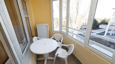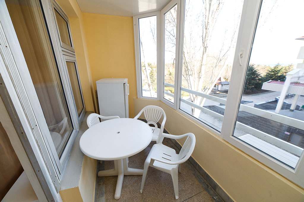 Номера с удобствами (совмещенный санузел с ванной, биде). В номере: набор мебели, телевизор, холодильник, кондиционер, просторная лоджия. Дополнительное место: раскладной диван.