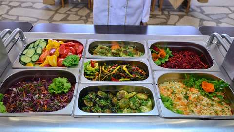 В межсезонье и при низкой загрузке комплекса питание осуществляется по комплексному меню (выбор блюд, диетическое питание).