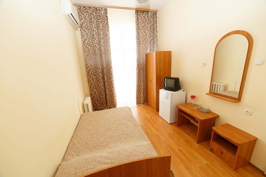 Номера с удобствами (совмещенный санузел с ванной). В номере: полуторная кровать, телевизор, холодильник, кондиционер, телефон, набор мебели, балкон. Ремонт 2019 года. Дополнительное место: еврораскладушка.