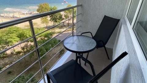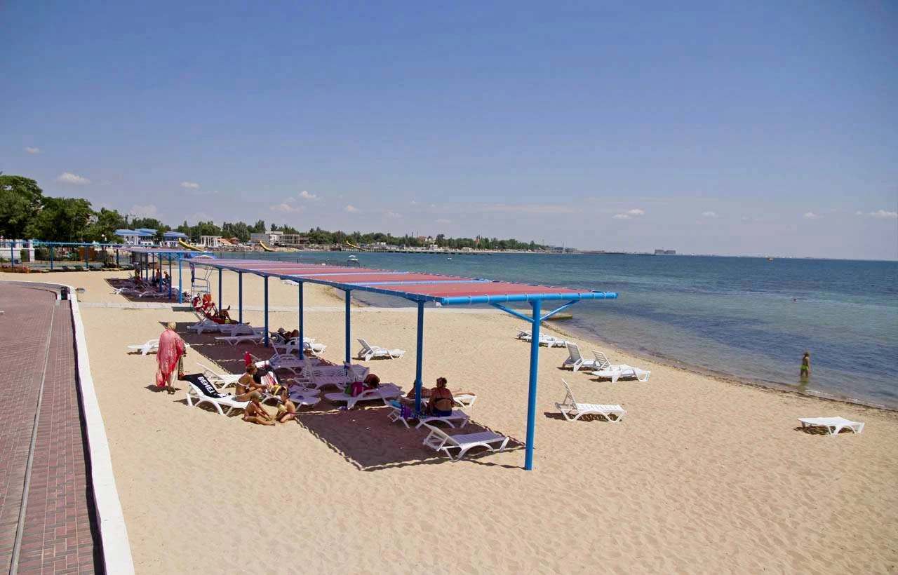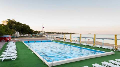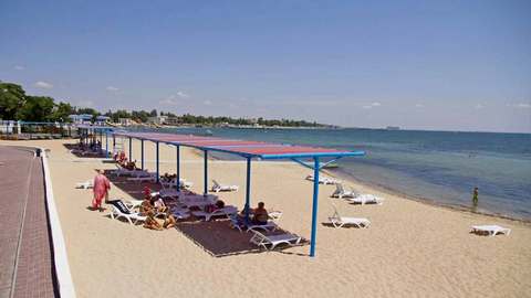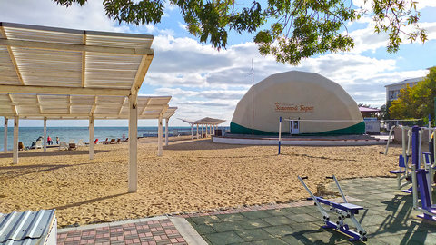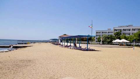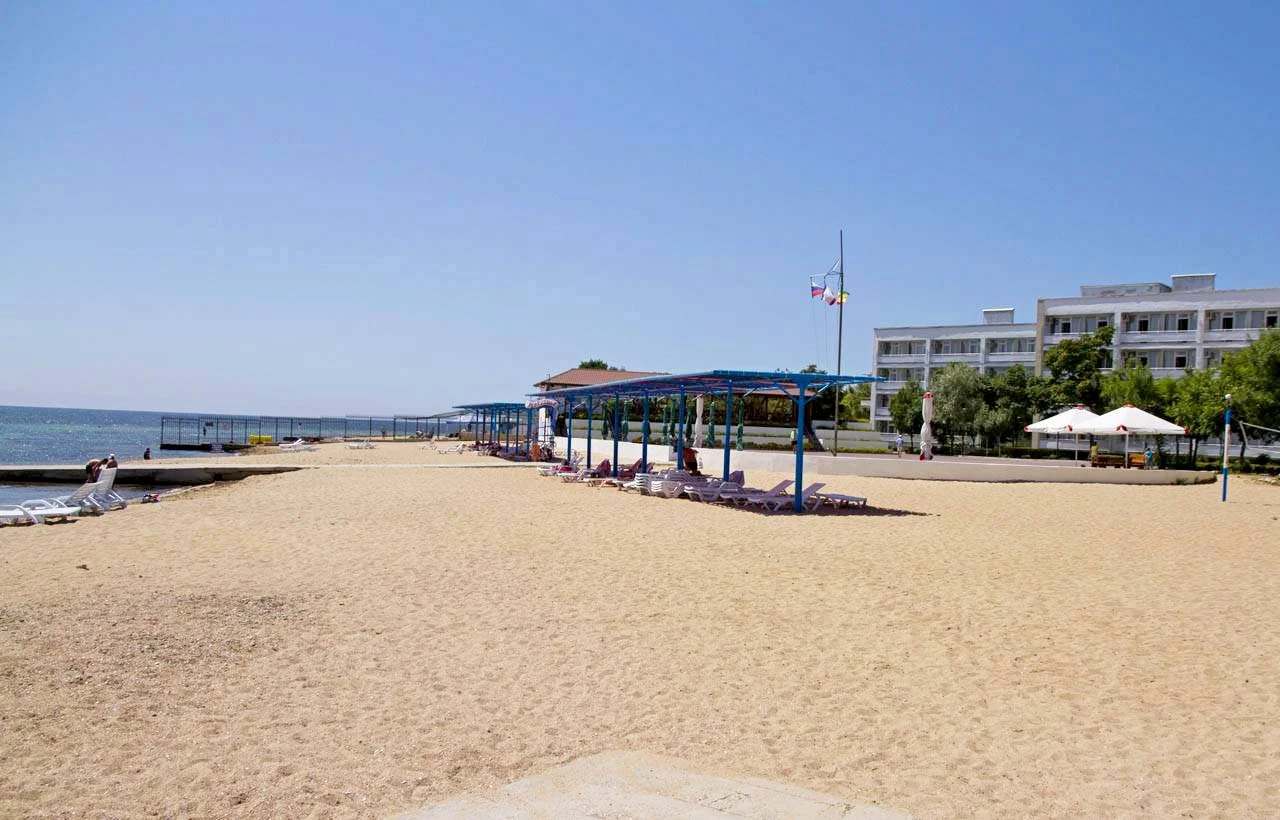 Собственный благоустроенный песчаный пляж, примыкающий к территории комплекса. Пляж оборудован теневыми навесами, шезлонгами, лежаками, раздевалками. Есть питьевые фонтанчики, душ и туалет.