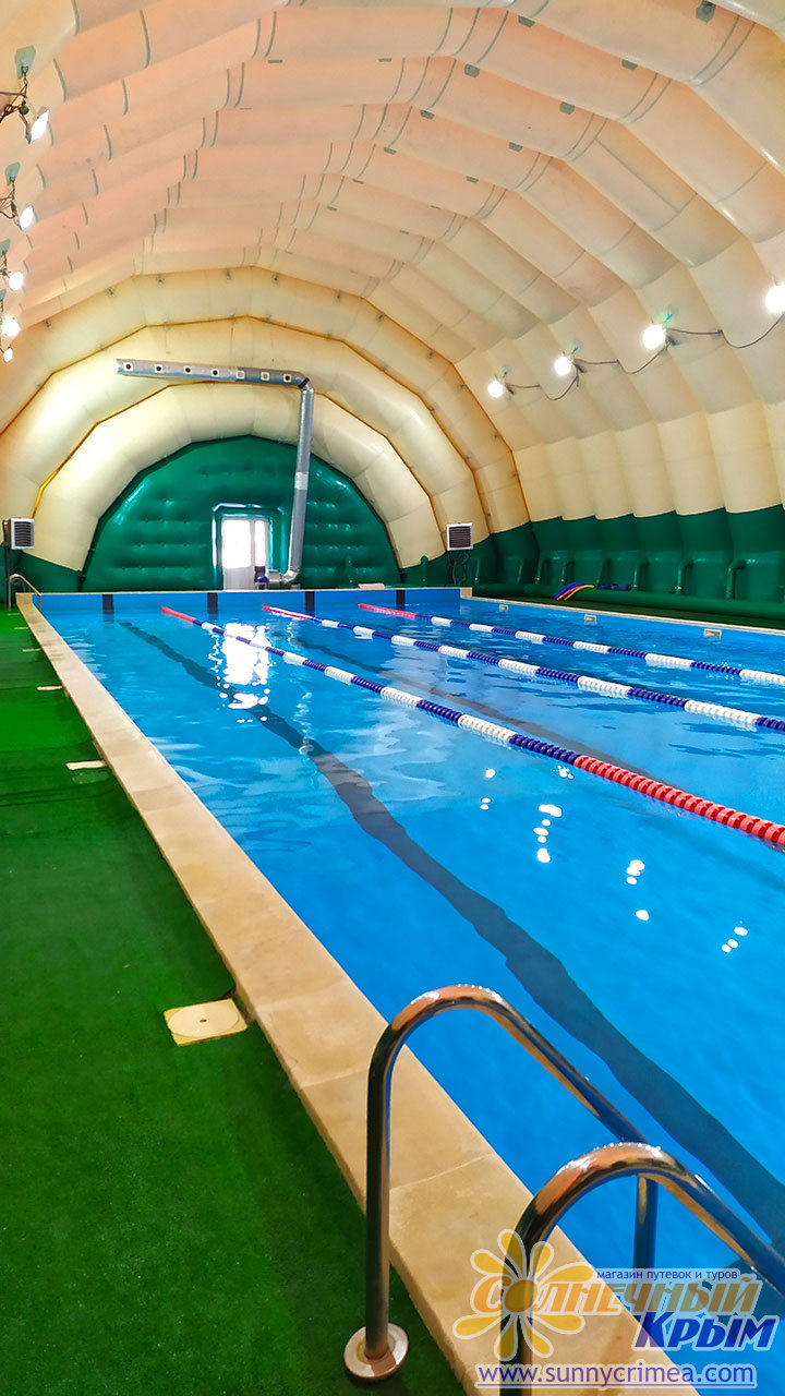 Открытый бассейн длиной 25 метров с пресной водой. В межсезонье, с октября по май, бассейн накрывается куполом и функционирует как крытый бассейн с подогреваемой пресной водой. Охраняемая парковка, спортивная площадка, футбольное поле, поле для мини-футбола, баскетбольная и волейбольная площадки, бильярд, настольный теннис, экскурсионное бюро, библиотека, киноконцертный зал на 230 мест, спа-процедуры.