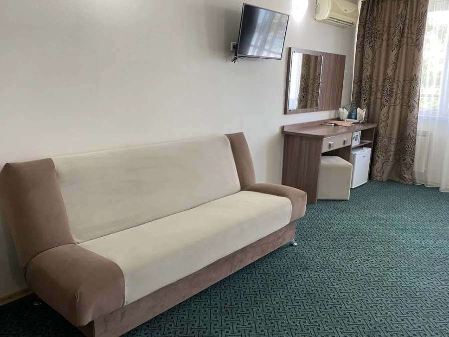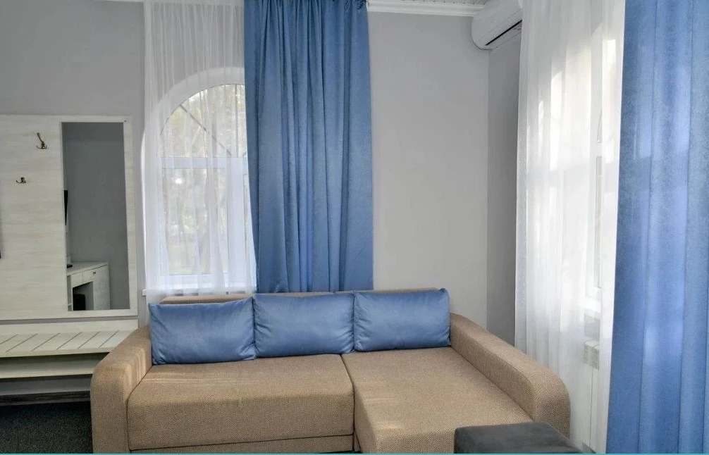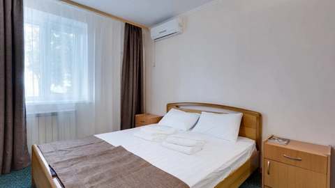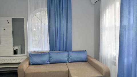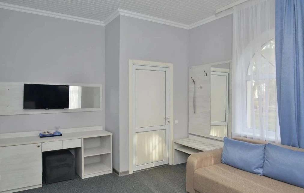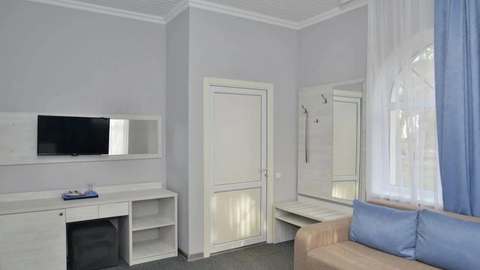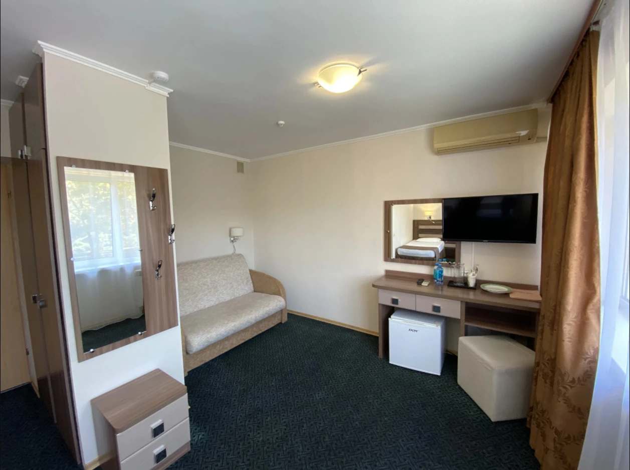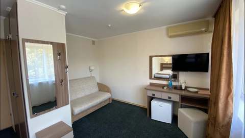 Площадь номера: 22 кв. м. В номере: двуспальная или две односпальные кровати, диван, кондиционер, телевизор, сейф, холодильник, электрочайник; санузел с душем, фен, минипарфюмерия. Номер с отдельным входом, вид на парк. Дополнительных мест: 2. Размещение до 4 человек.