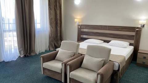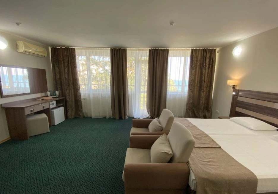 Площадь номера: 16 кв. м. В номере: двуспальная или две односпальные кровати, кресло-кровать, кондиционер, телевизор, сейф, холодильник; санузел с душем, фен, минипарфюмерия. Номер с балконом, видом на море. Дополнительное место: кресло-кровать. Размещение до 3 человек.