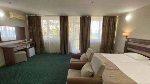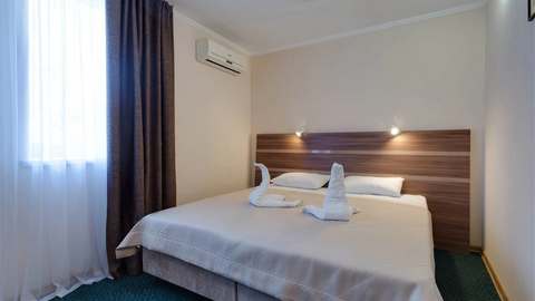 Площадь номера: 25 кв. м. В номере: двуспальная или две односпальные кровати, диван, кондиционер, телевизор, сейф, холодильник; санузел с душем, фен, минипарфюмерия. Номер без балкона с видом на море. Дополнительных мест: 2 (раскладной диван). Размещение до 4 человек.